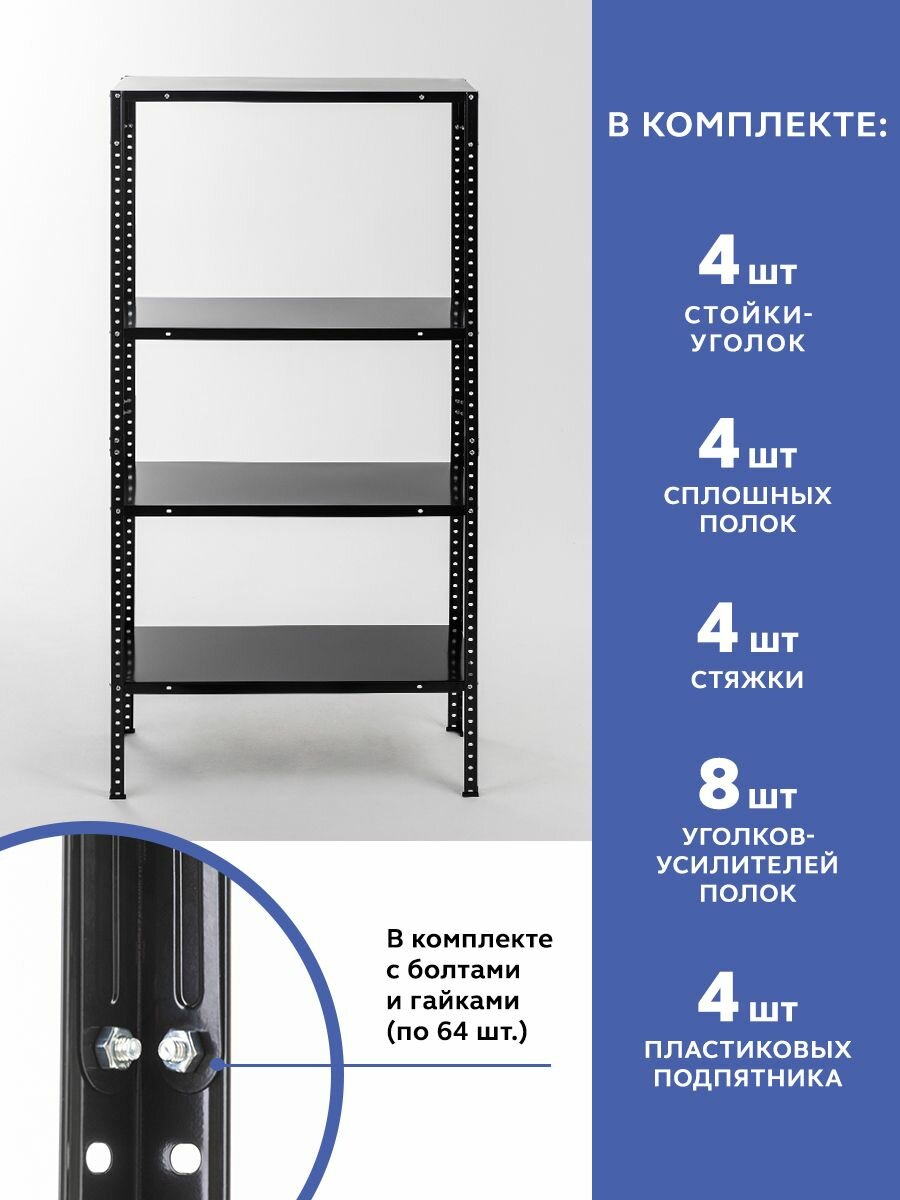 Стеллаж металлический болтовой GASTRORAG GR-005-1, 4 полки, размеры 150х75х30 см, этажерка для кухни, мебель лофт, подставка для цветов и рассады, система хранения для дома, дачи и гаража