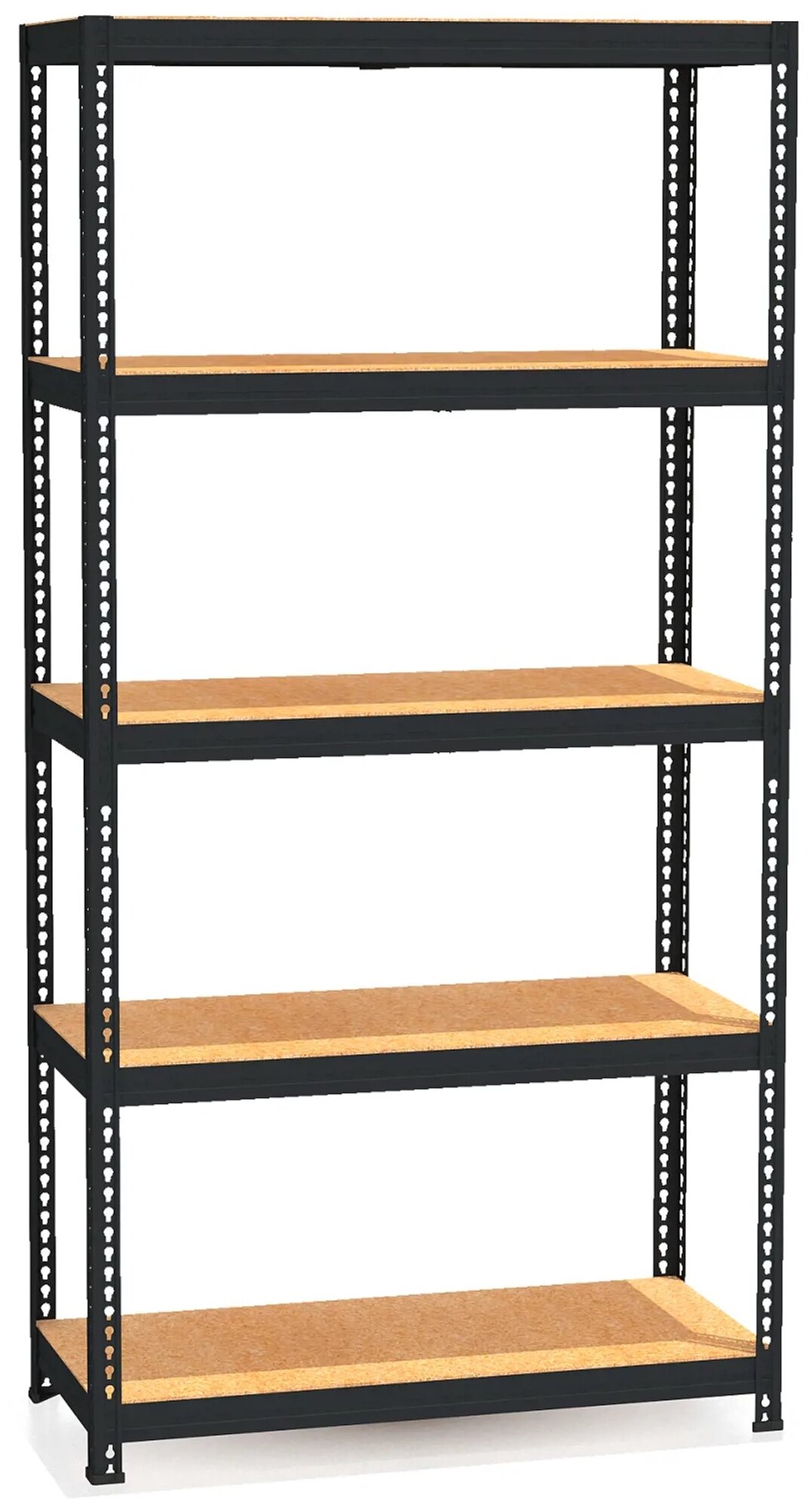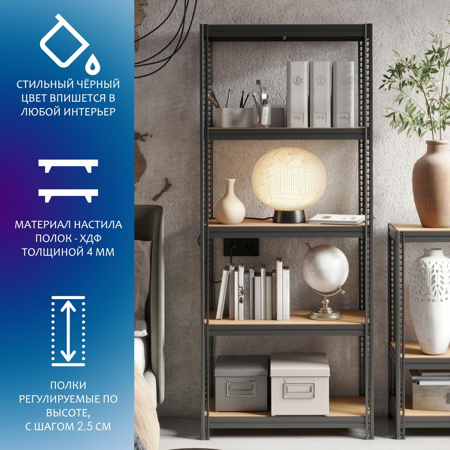 Стеллаж металлический чёрный 180x90x40 см, 5 полок из ХДФ. Стеллаж лофт для установки на балкон, для дачи, дома, гаража, офиса или склада. интересное: