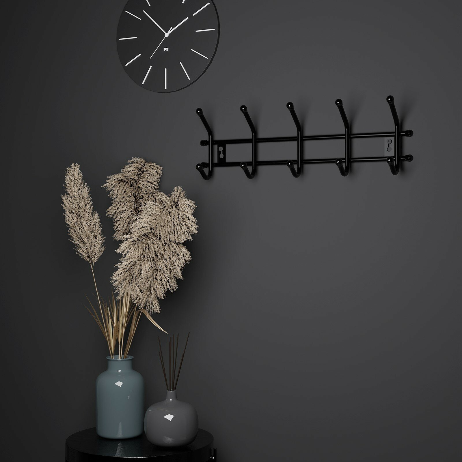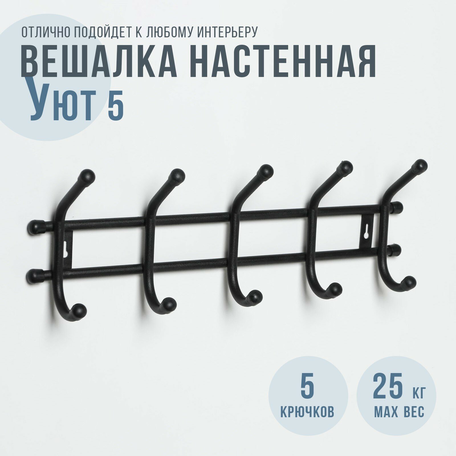Вешалка настенная на 5 крючков «Уют 5», цвет чёрный