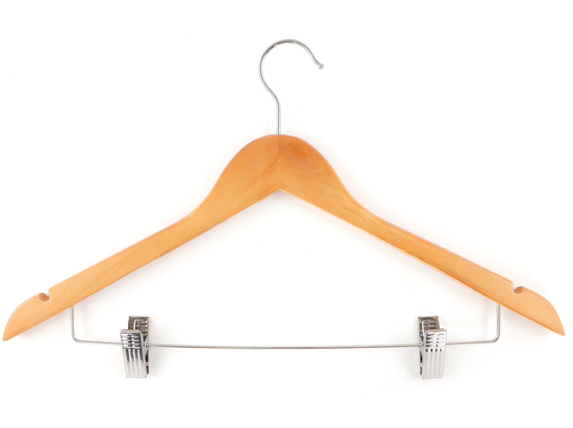 Купить Вешалки-плечики для одежды, костюма, брюк и юбок с прищепками (зажимами) деревянные, L-45 см, цвет светлое дерево, комплект 3 штуки
