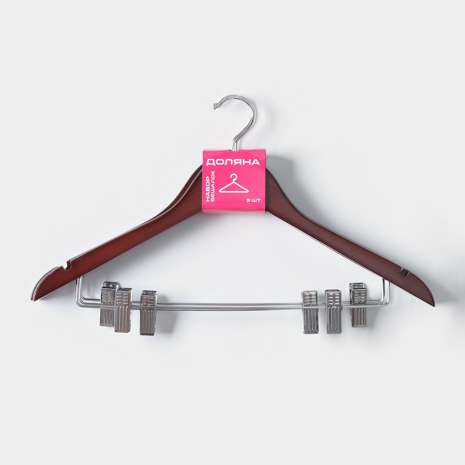 Набор вешалок с зажимами 3 шт, размер 44,5х23 см, дерево вишня, сорт В Доляна 7162572 . интересное: