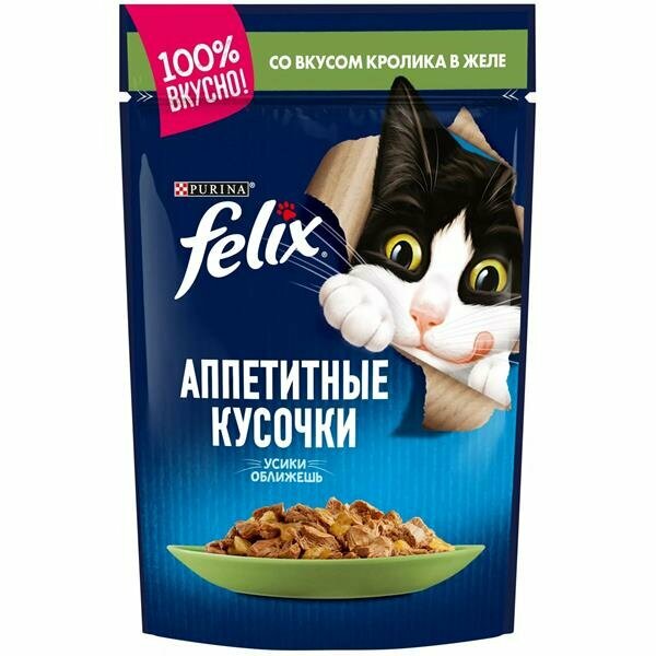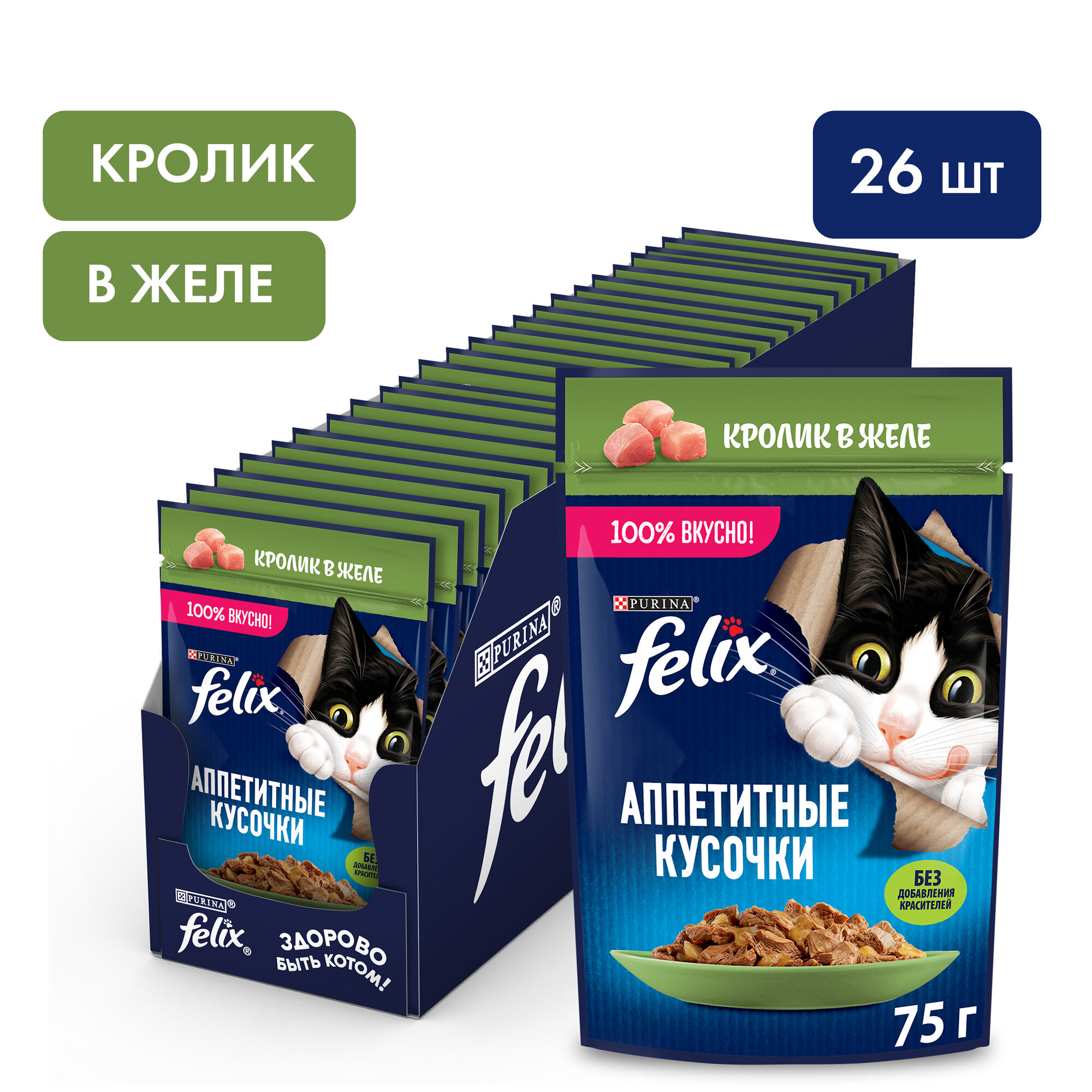 Купить Felix пауч консервы для кошек аппетитные кусочки с кроликом 26х75г
