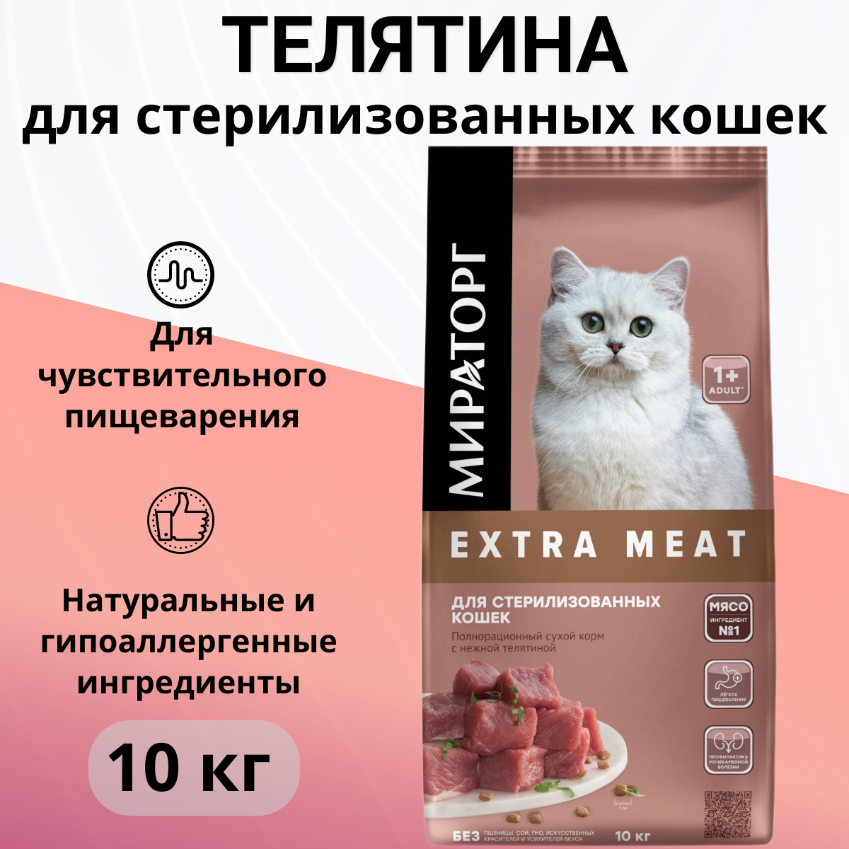 Сухой корм для кошек Мираторг Extra Meat с нежной телятиной для стерилизованных кошек 10 кг