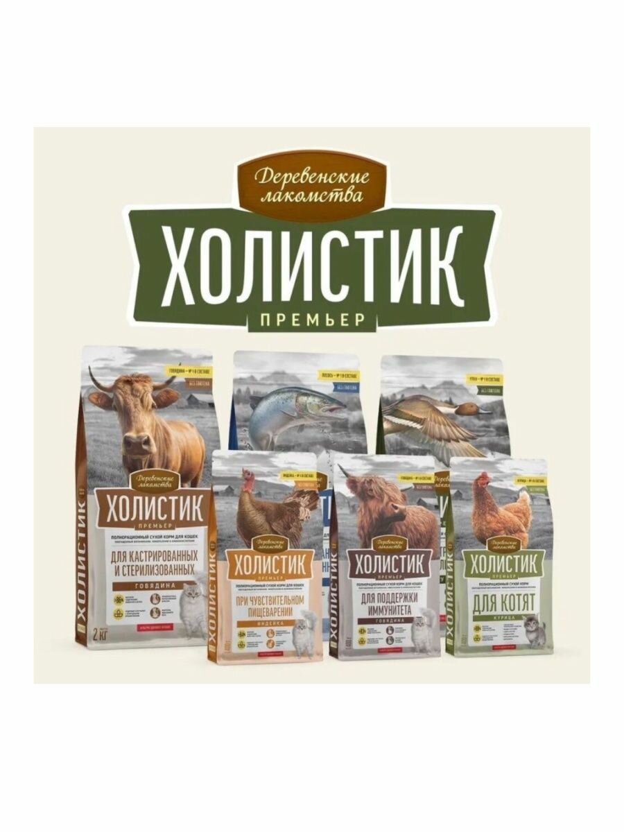2кг+2кг Сухой полнорационный корм деревенские лакомства холистик премьер для поддержки иммунитета кошек с говядиной