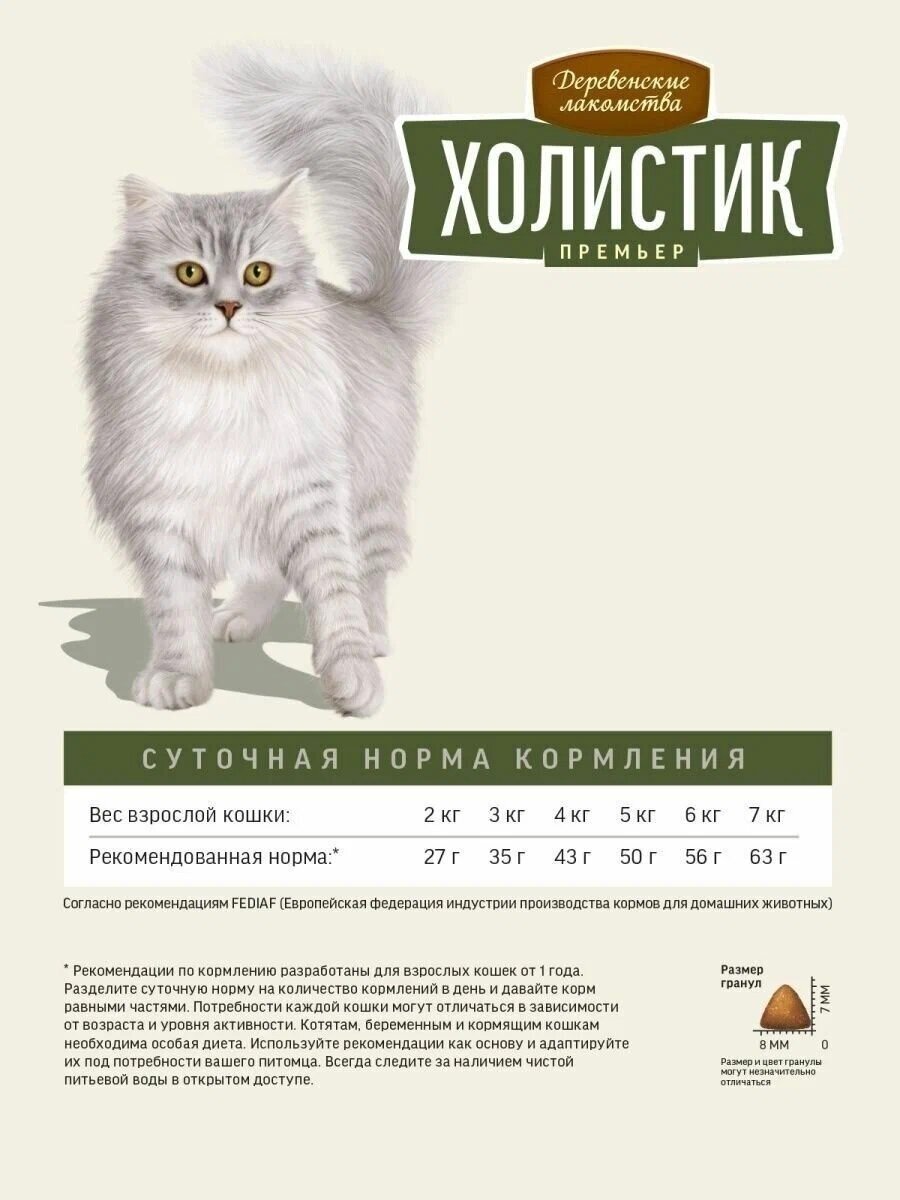 Деревенские лакомства: Холистик Премьер, индейка, сухой корм при чувствительном пищеварении кошек, 2 кг