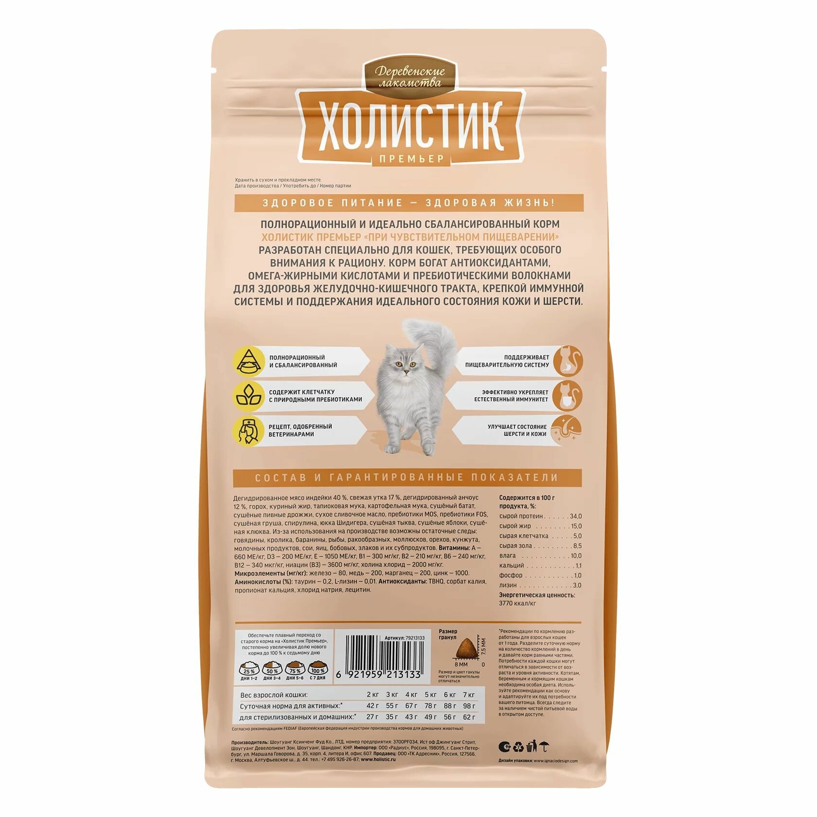 Деревенские лакомства Холистик Премьер сухой корм для кошек c чувствительным пищеварением, с индейкой, 2 кг