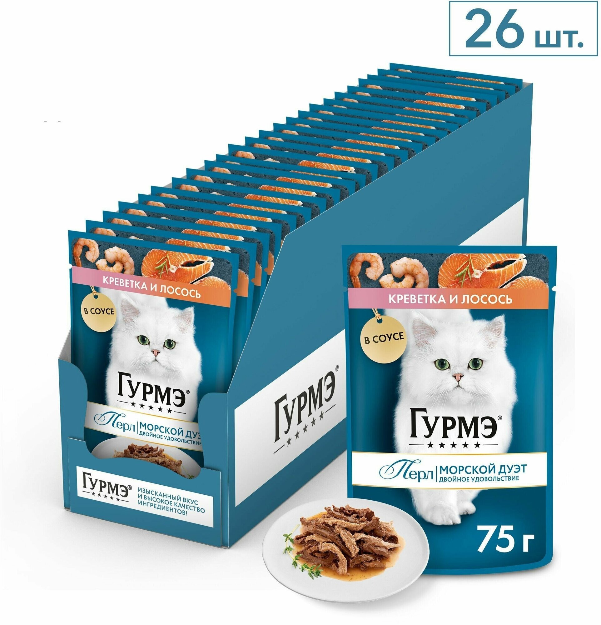 Влажный корм для кошек Gourmet гурмэ Перл Морской Дуэт с креветкой и и лососем 26шт.*75г