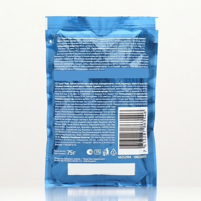 Купить Гурмэ Перл пауч для кошек (кусочки в соусе) Утка, 75 г. упаковка 26 шт