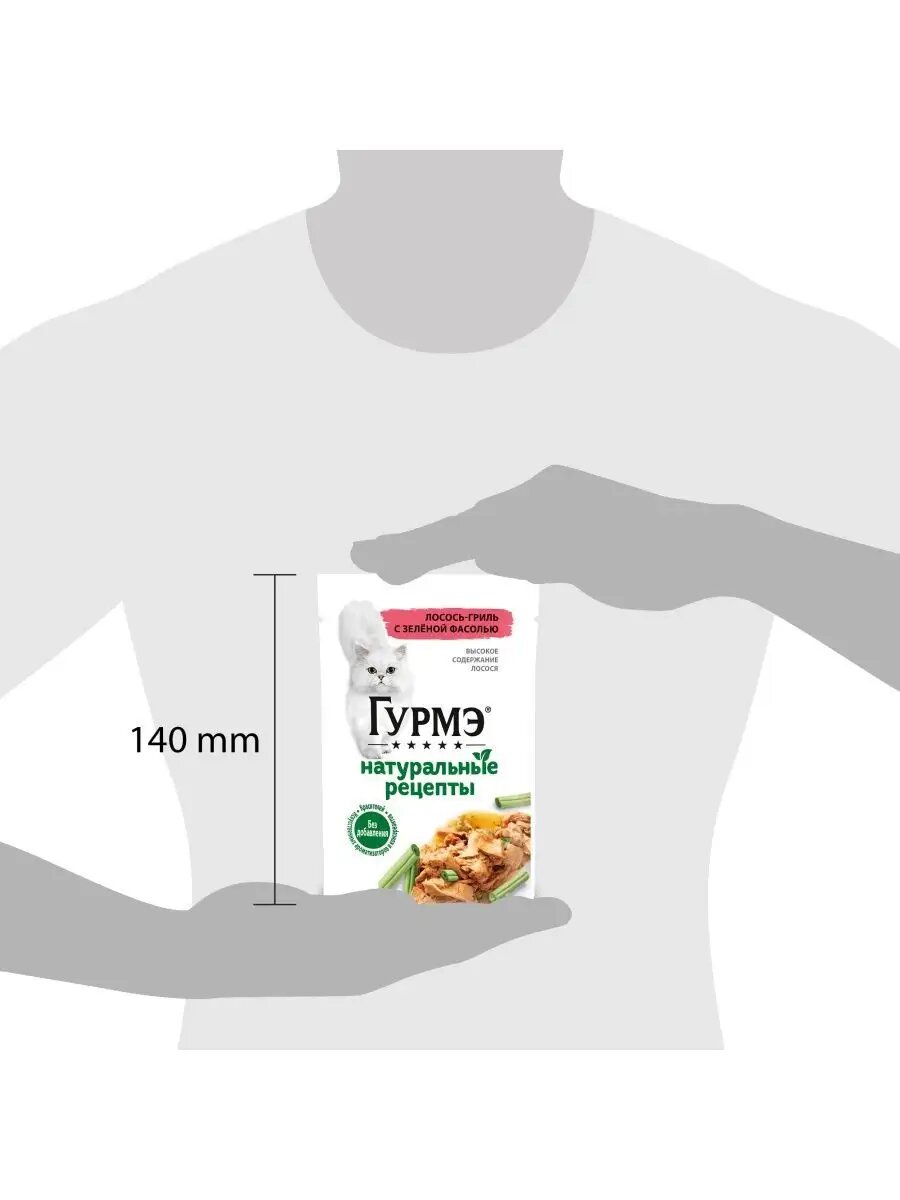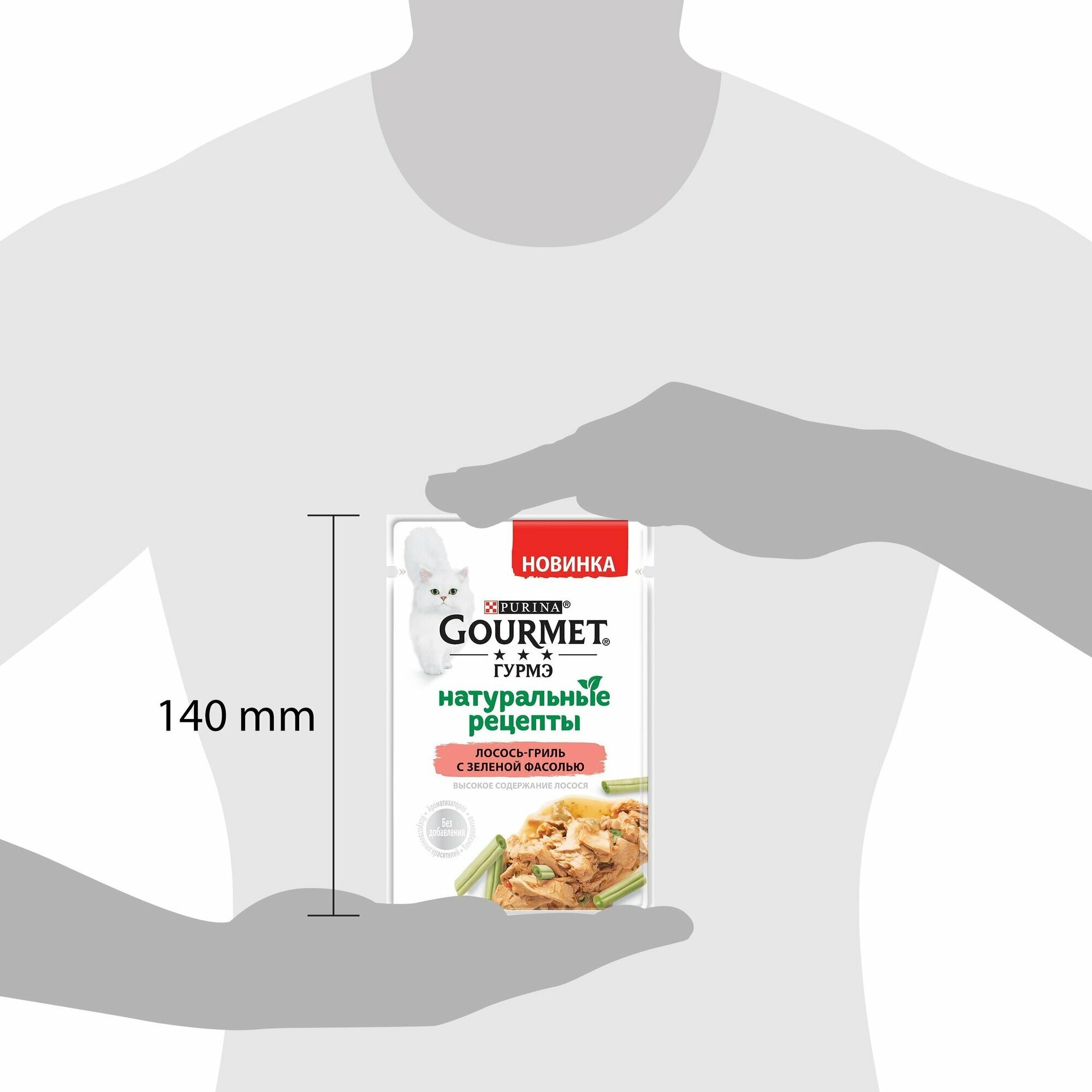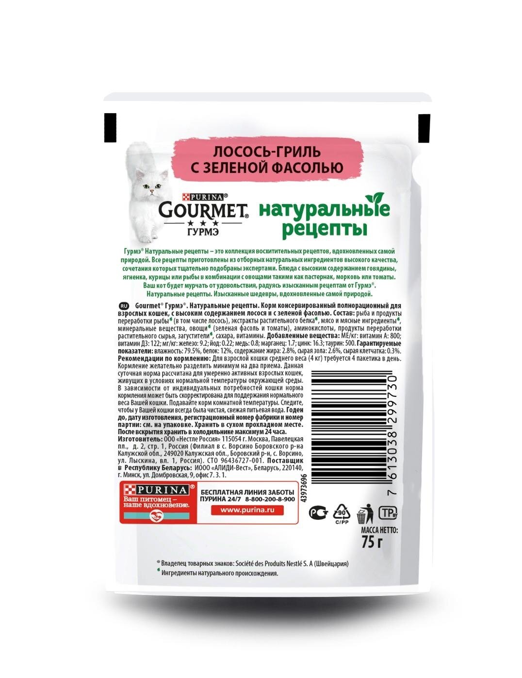 Гурмэ натуральные рецепты для взрослых кошек с лососем-гриль и зеленой фасолью пауч 75 гр NEW 75 гр х 10 шт