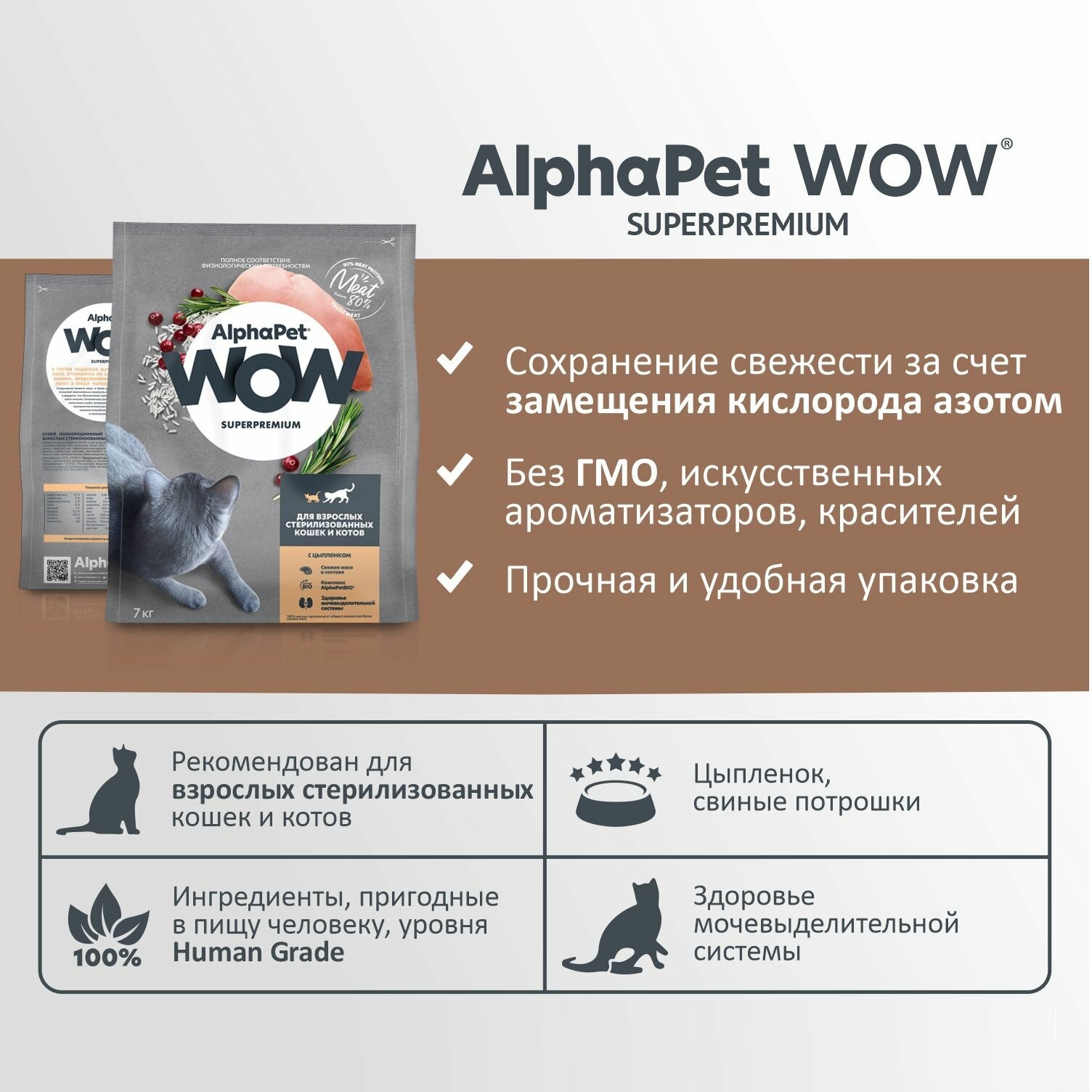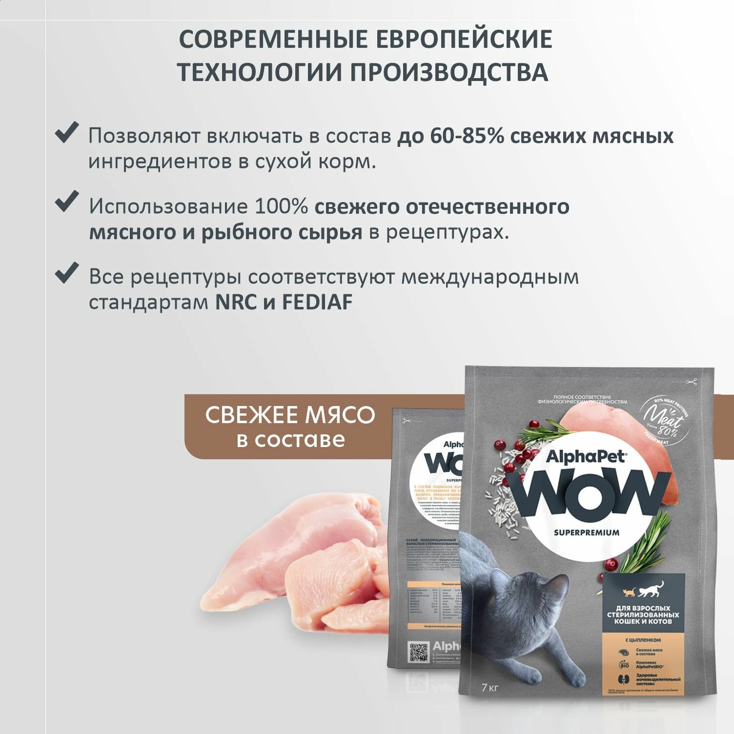 Корм сухой Alphapet WOW Superpremium полнорационный для взрослых стерилизованных кошек (c цыпленком) 7 кг