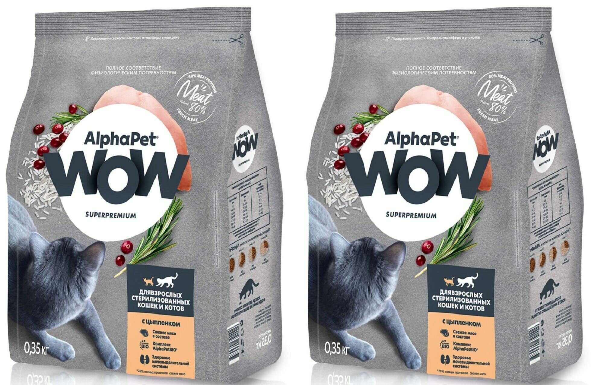 Alphapet wow Superpemium сухой корм для взрослых стерилизованных кошек и котов c цыпленком, 350 гр, 2 уп