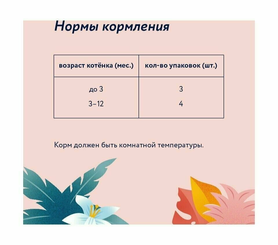 | Возраст животного | взрослые (1-6 лет) / котята (до 1 года) / пожилые (7+) |