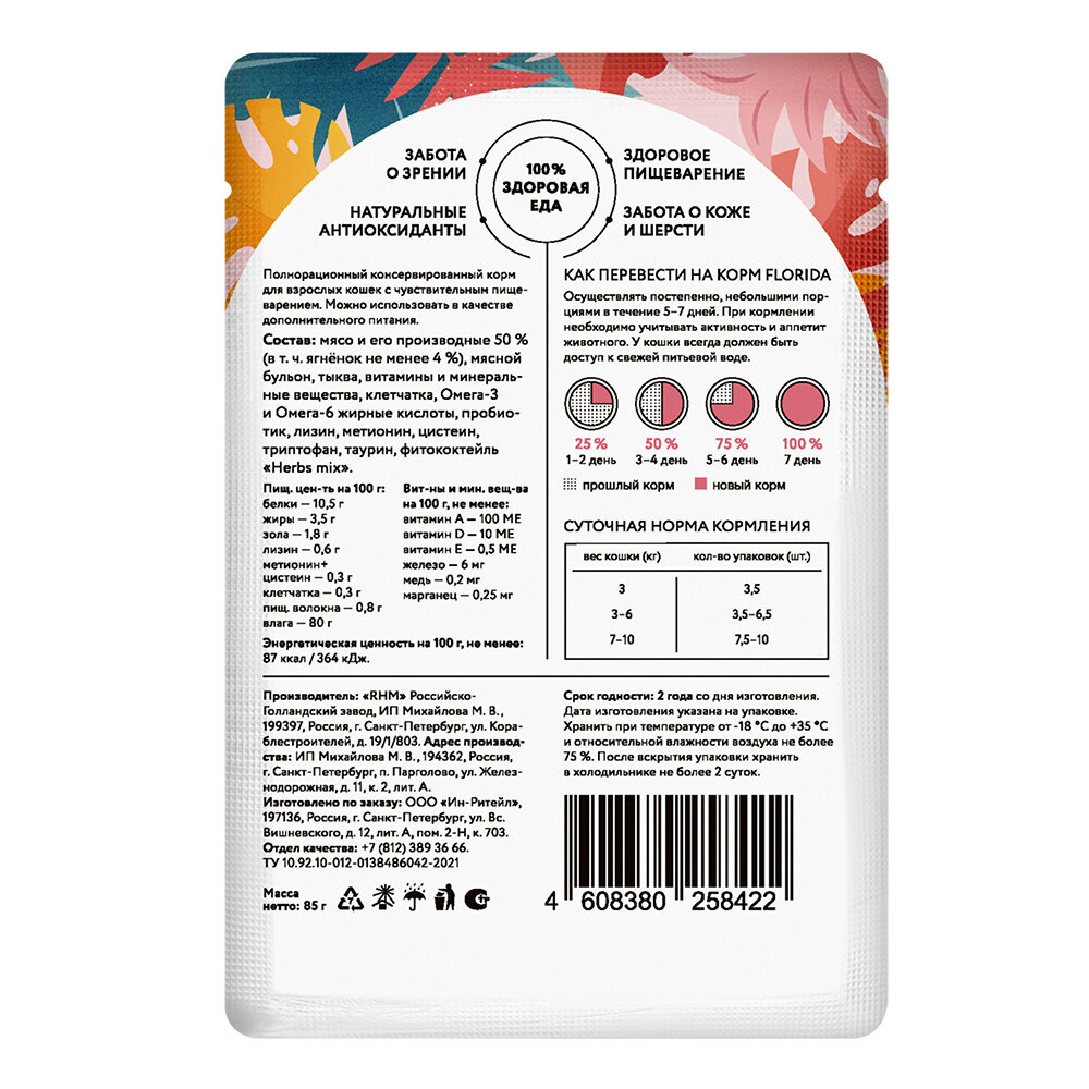 Ниже Вы можете прочитать отзывы на Florida паучи для взрослых кошек с чувствительным пищеварением (кусочки в желе) Ягненок и тыква, 85 г. упаковка 12 шт, ознакомится с подробными характеристиками, посмотреть интересные обзоры и фотографии на Florida паучи для взрослых кошек с чувствительным пищеварением (кусочки в желе) Ягненок и тыква, 85 г. упаковка 12 шт.