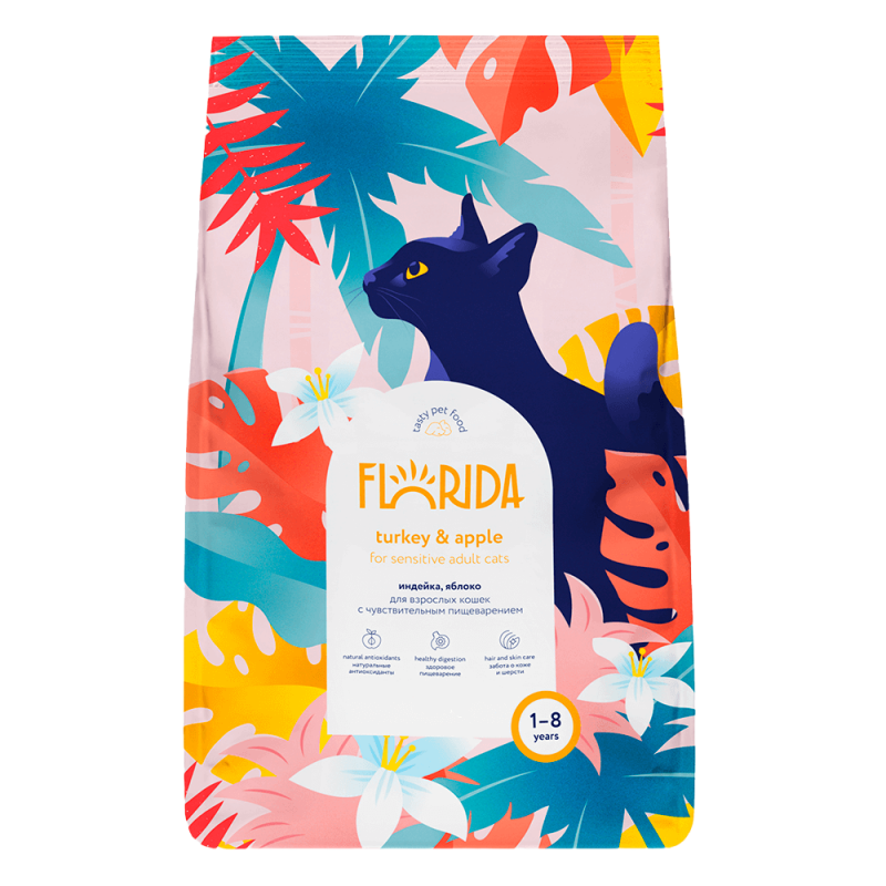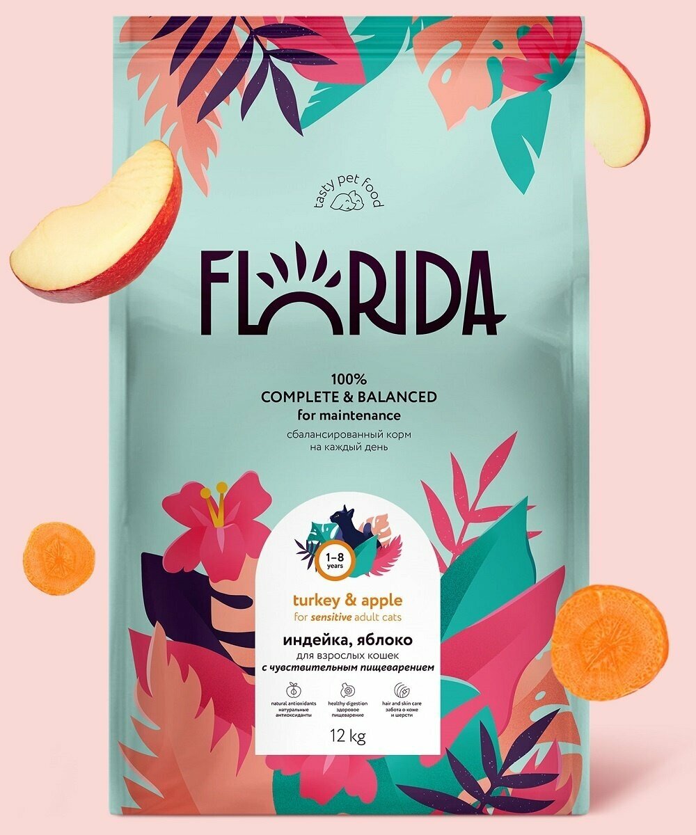 Florida для взрослых кошек с чувствительным пищеварением с индейкой и яблоком / Флорида 4кг