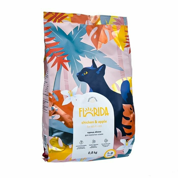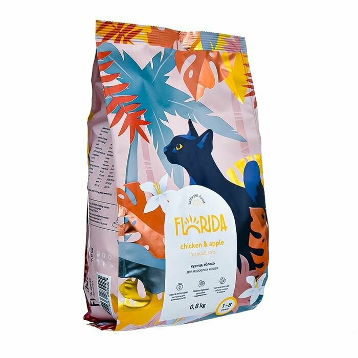 FLORIDA сухой корм для взрослых кошек, с курицей и яблоком, Adult Chicken, 800 гр.