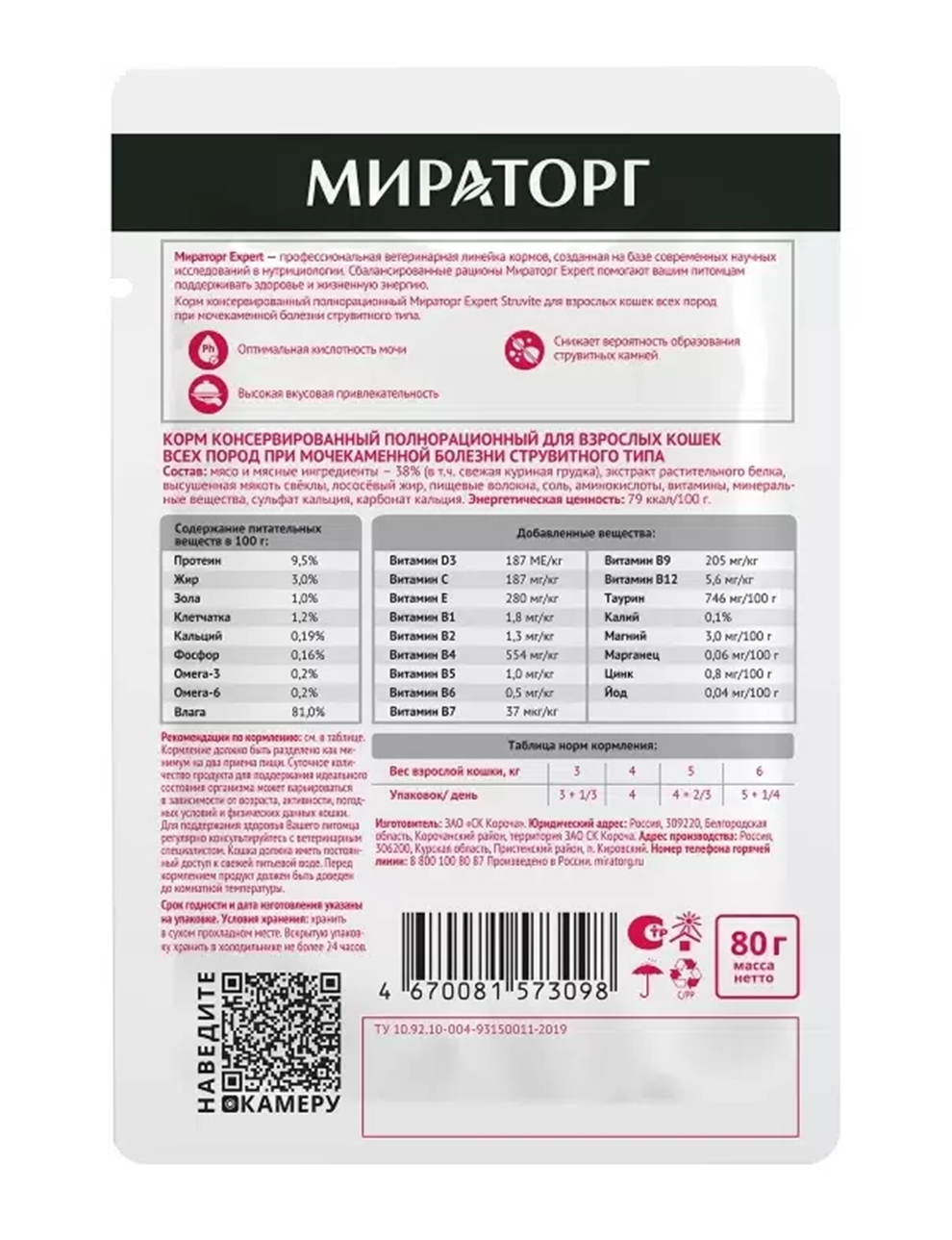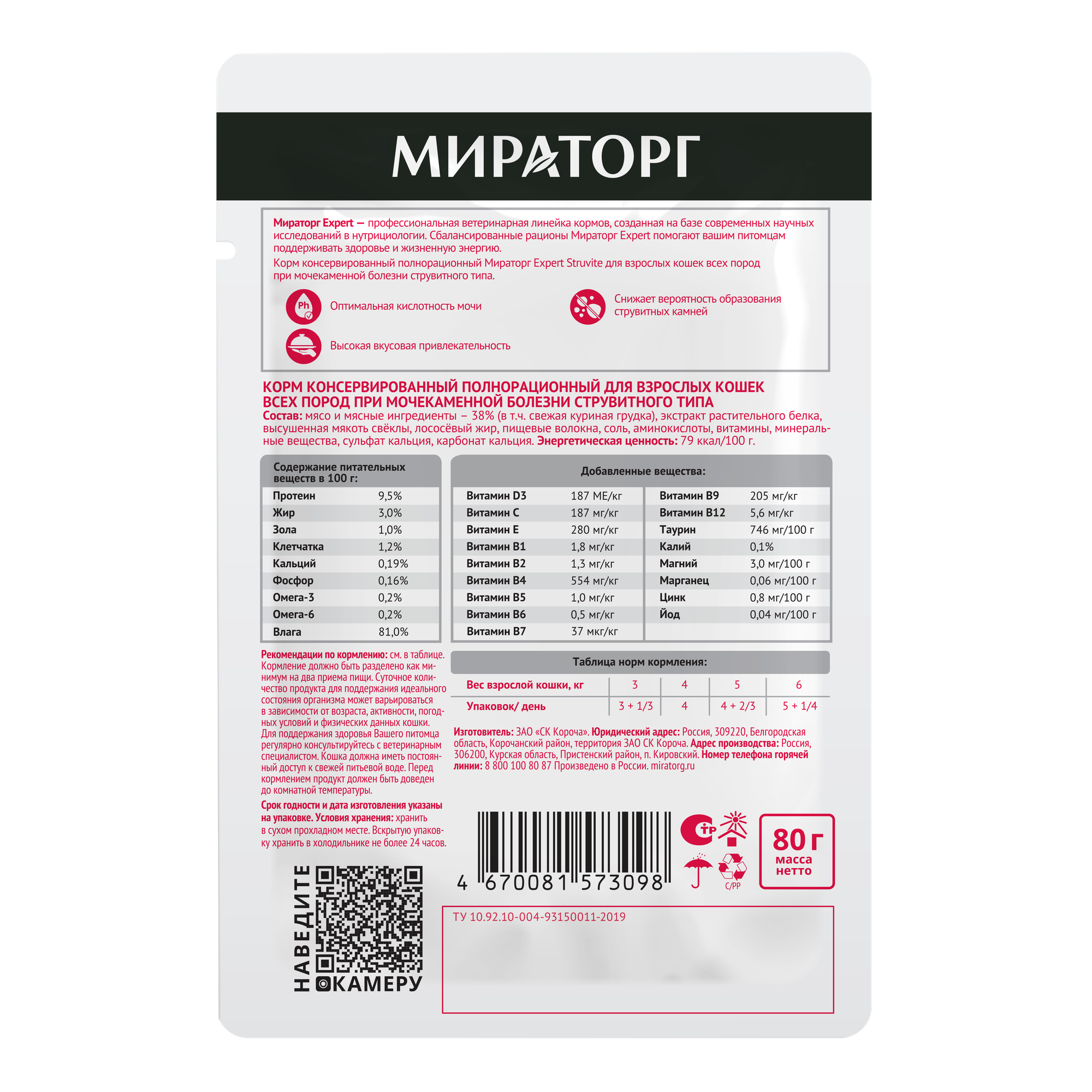 СохранитьВлажный корм для кошек Мираторг Expert Struvite полнорационный, при мочекаменной болезни струвитного типа, кусочки в соусе, в паучах 80 г х 24 шт интересное: