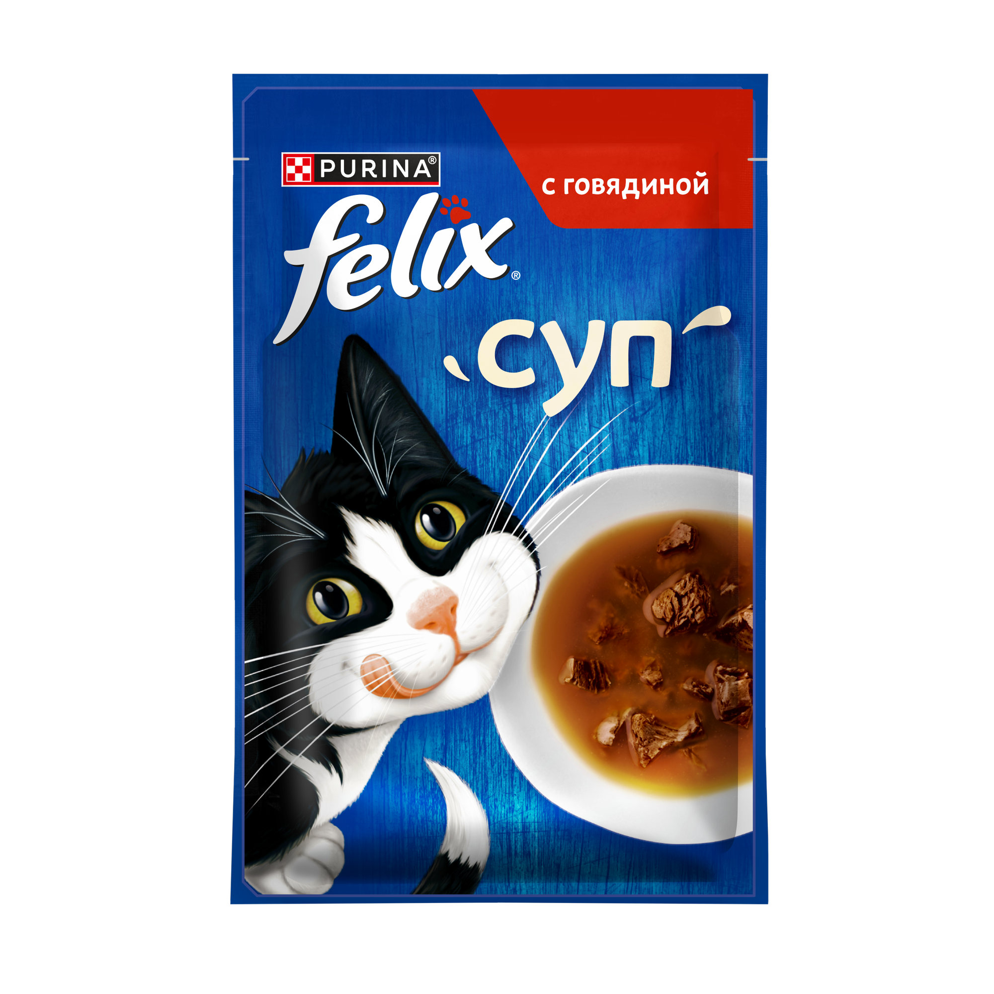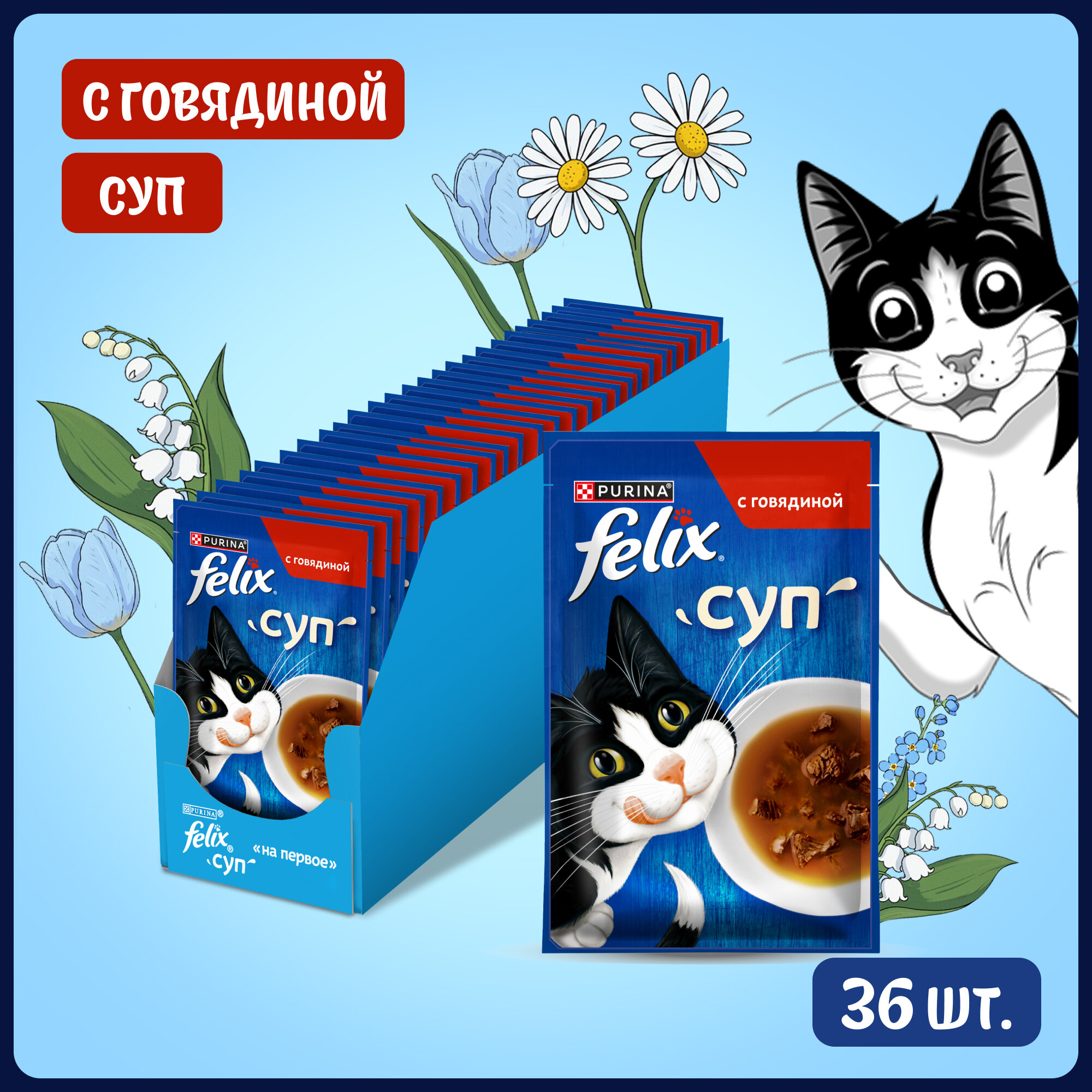 Купить Felix суп 48 г пауч влажный корм для взрослых кошек, с говядиной * 36 штук
