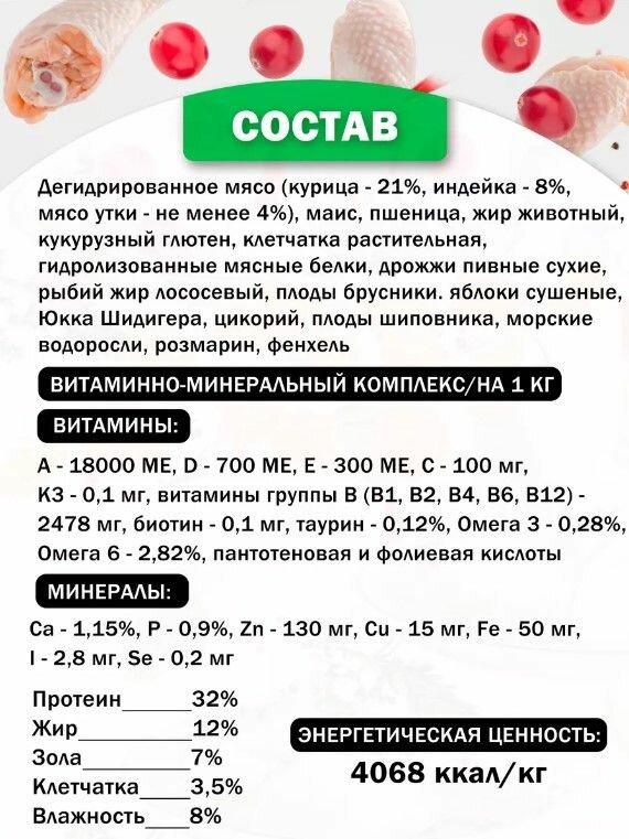 Сухой корм Зооринг / ZooRing Sterilized Cat Max Turkey & Duck & Lingonberry. для стерилизованных кошек, индейка и утка с брусникой, 1,5 кг