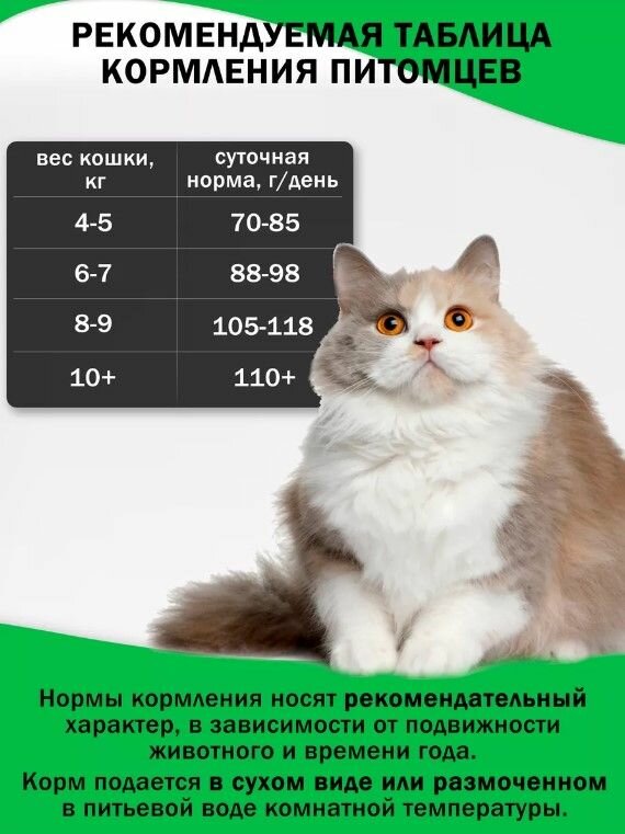 | Возраст животного | взрослые (1-6 лет) / котята (до 1 года) / пожилые (7+) |