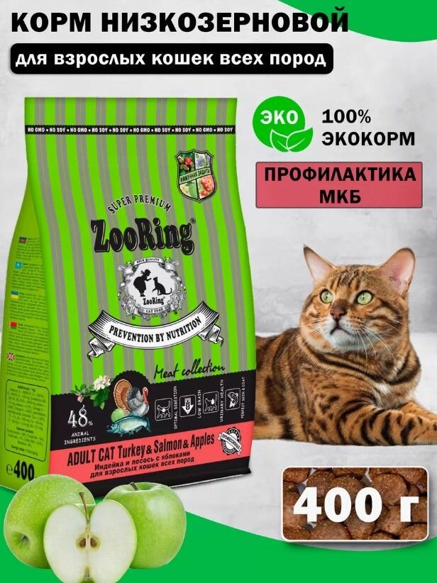 Сухой корм ZooRing ADULT CAT TURКEY индейка и лосось с яблоком для кошек, 400г