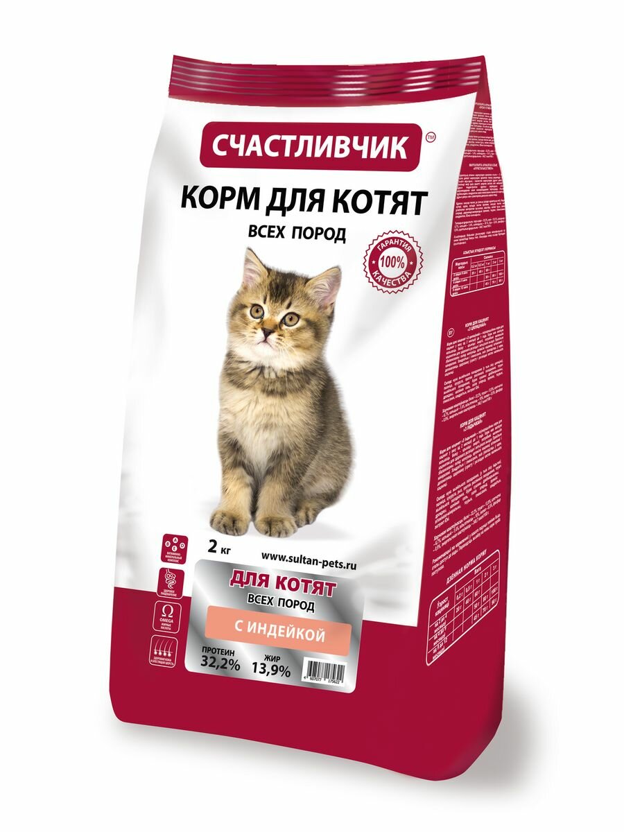 Купить Корм для котят сухой Счастливчик Индейка 2 кг