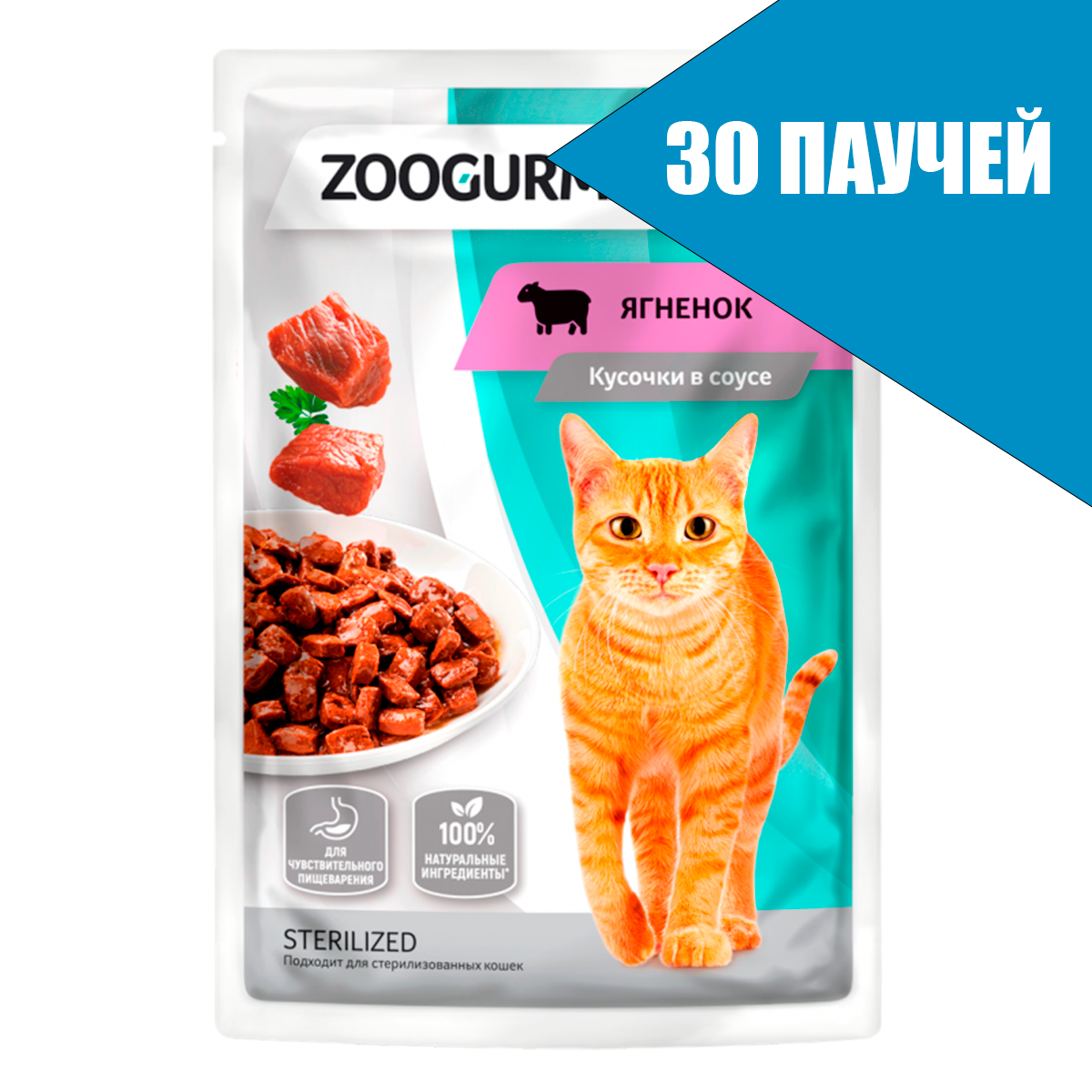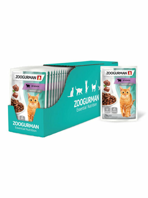 Купить Зоогурман влажный корм для взрослых кошек, с ягненком, в паучах - 85 г х 30 шт
