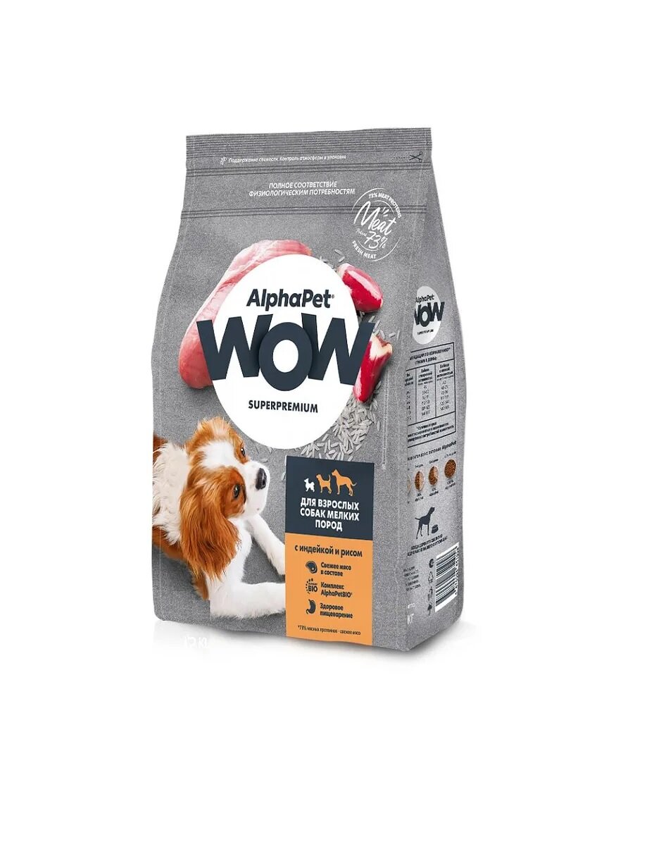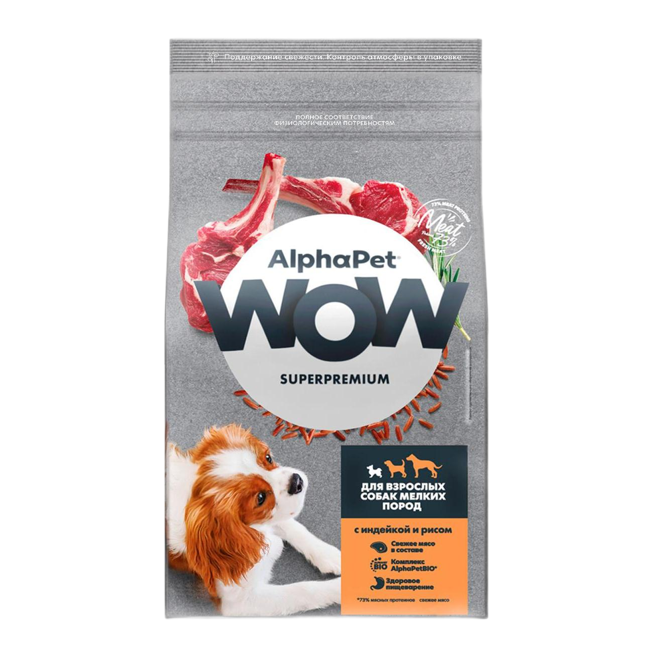 Сухой корм AlphaPet WOW Superpremium для собак мелких пород, с индейкой и рисом, 1,5 кг