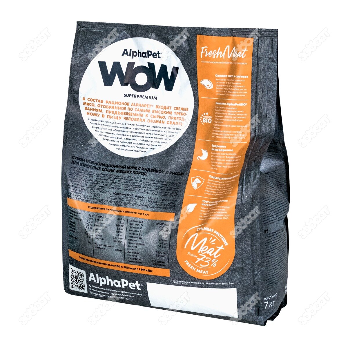 Корм сухой Alphapet WOW Superpremium полнорационный для взрослых собак мелких пород (с индейкой и рисом) 7кг.