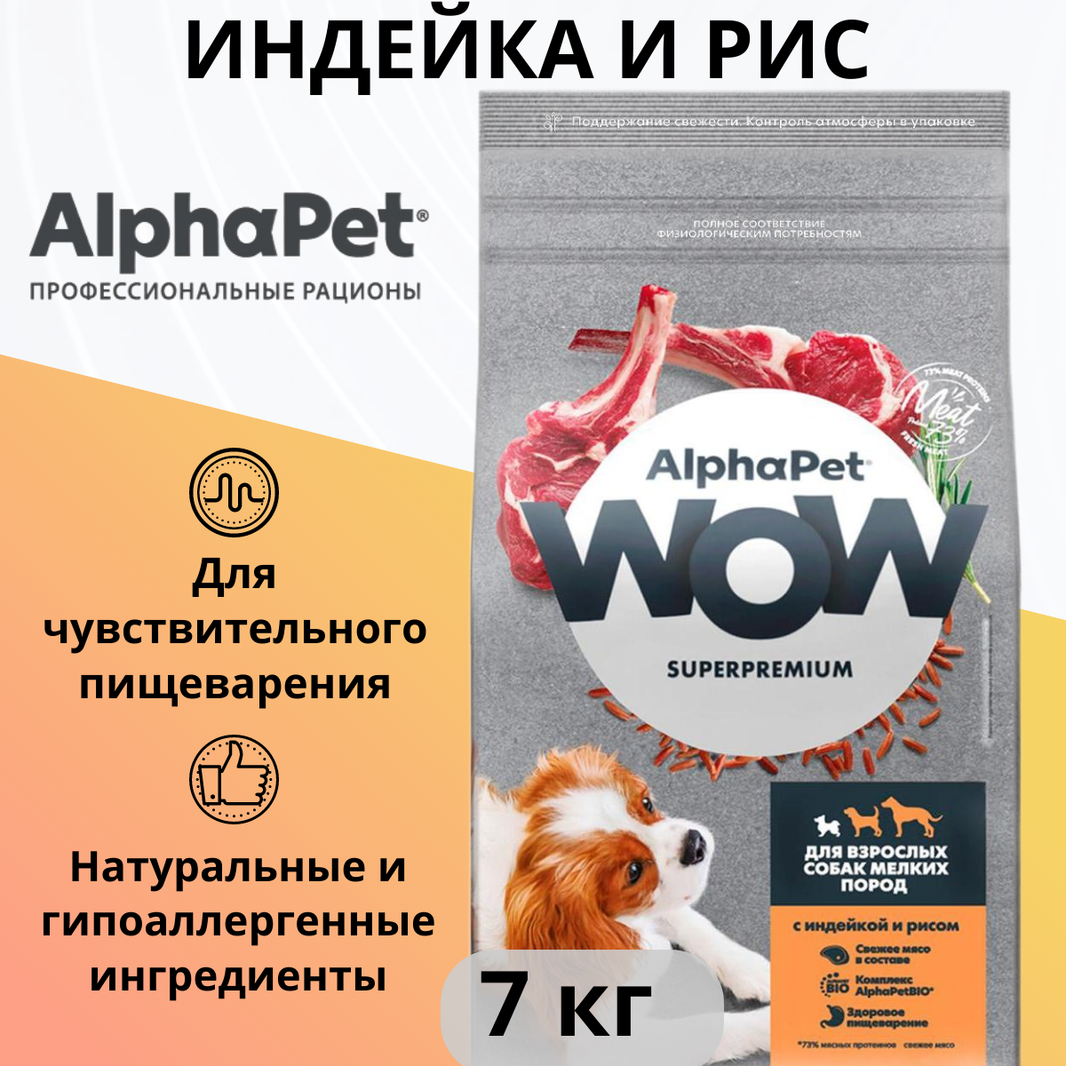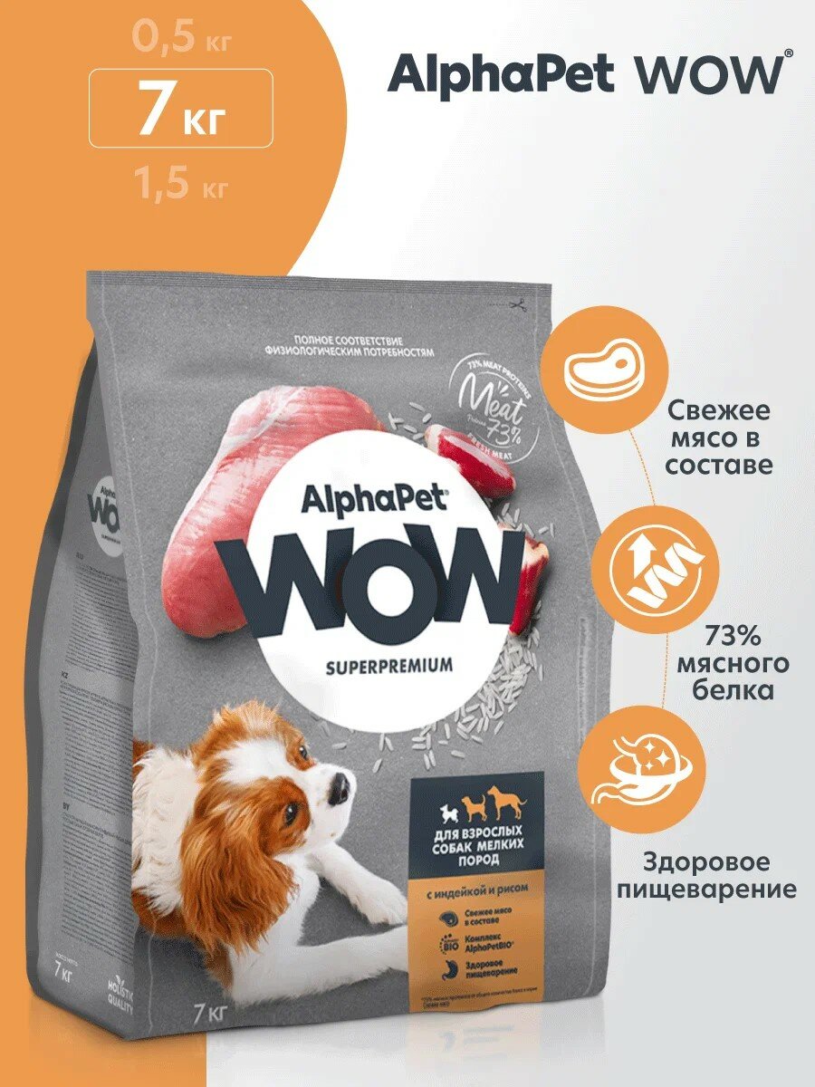 Купить AlphaPet Wow - Сухой корм для взрослых собак мелких пород, с Индейкой и Рисом (7 кг)