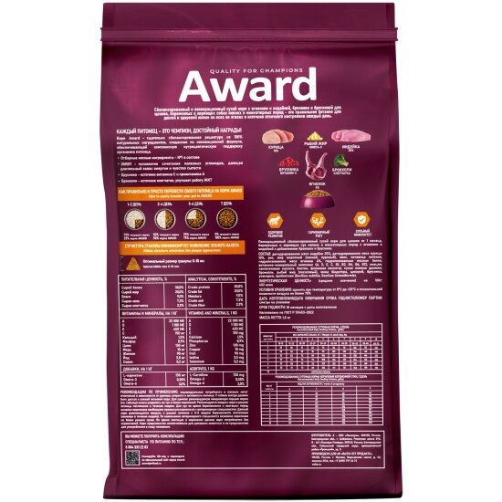 Award - Сухой корм для взрослых собак средних пород с индейкой и курицей с добавлением моркови и черной смородины (12кг)