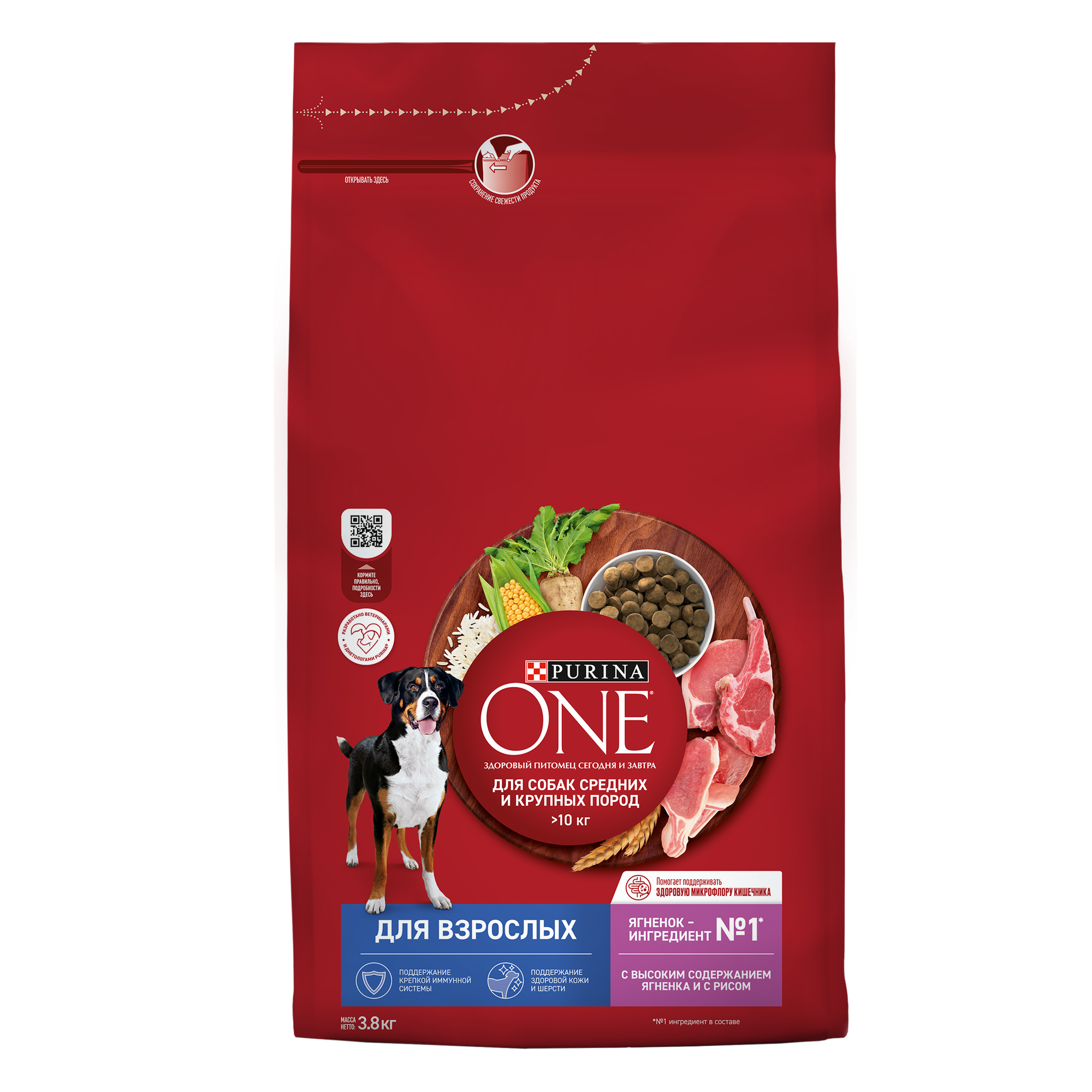 PURINA ONE для взрослых собак средних и крупных пород с ягненком и рисом (3,8 кг х 4 шт)