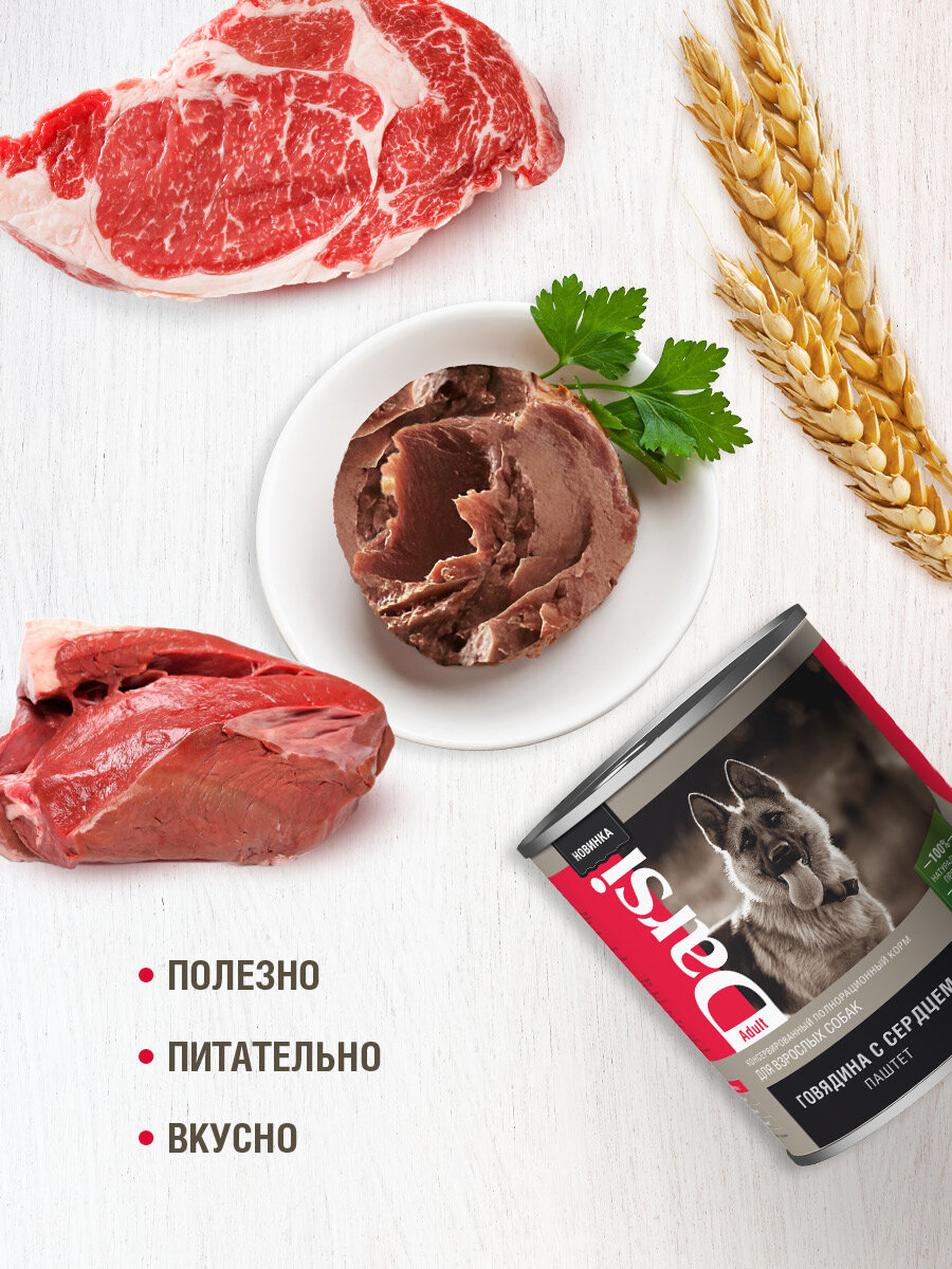 Влажный корм для собак 850 гр, 6 шт DARSI, Говядина с сердцем интересное: