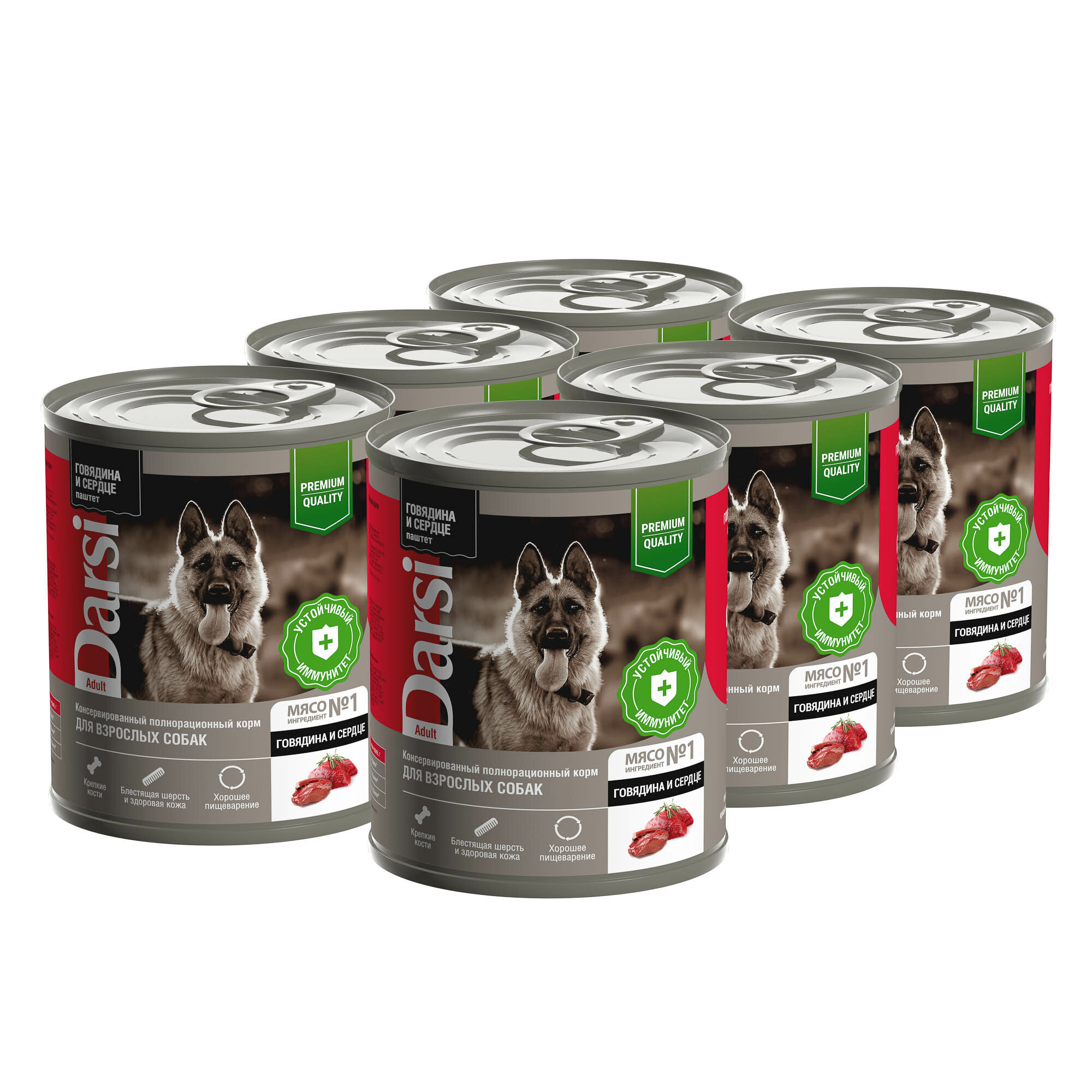 Консервы Darsi (паштет) для взрослых собак Говядина с сердцем , 6 шт. х 850г