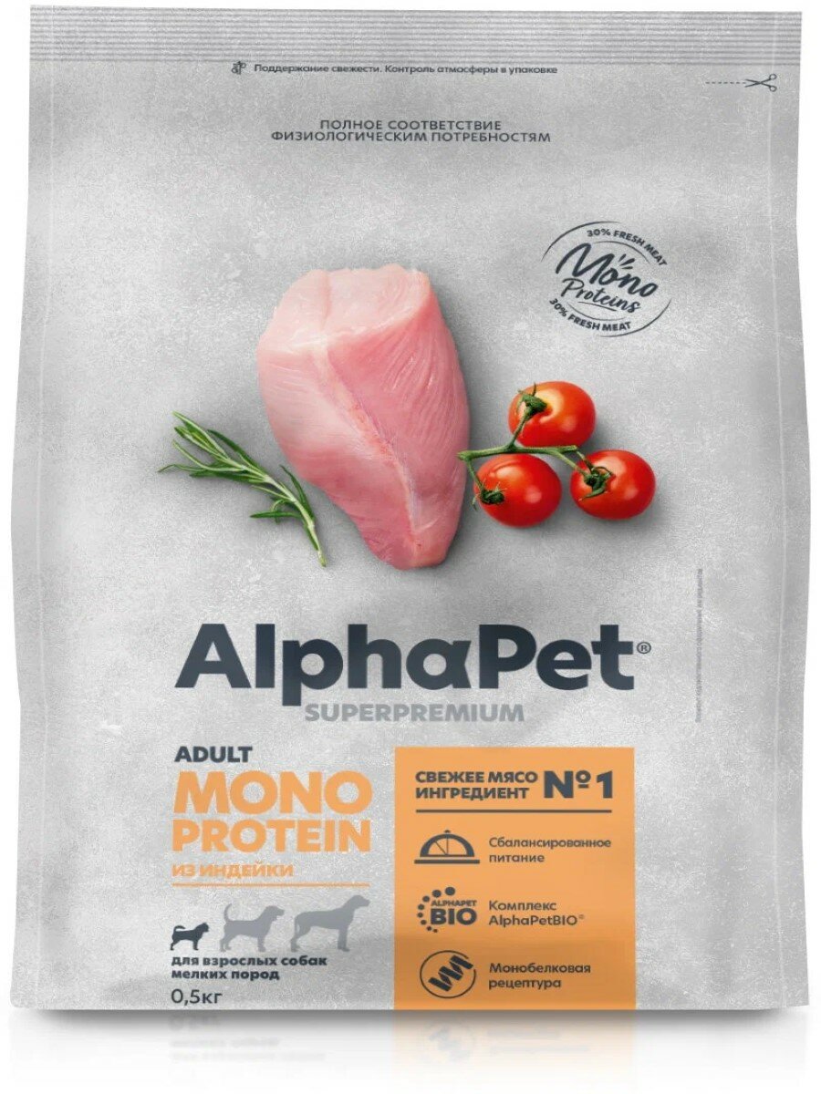 Купить Сухой корм для взрослых собак мелких пород AlphaPet Monoprotein из индейки, 500г