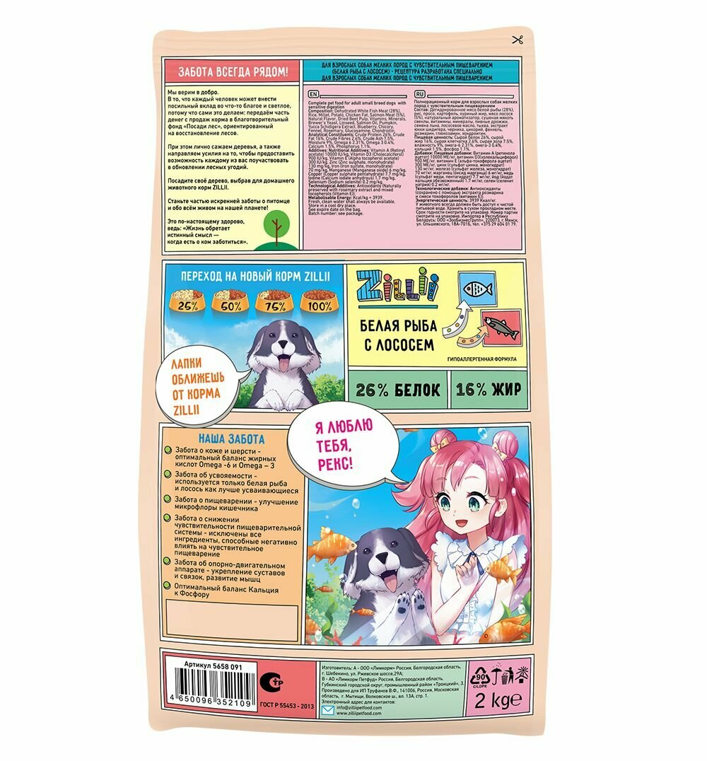 Zillii Сухой корм для взрослых собак мелких пород с чувств пищеварением Белая Рыба Лосось 5658093 15,000 кг 63981 (1 шт)