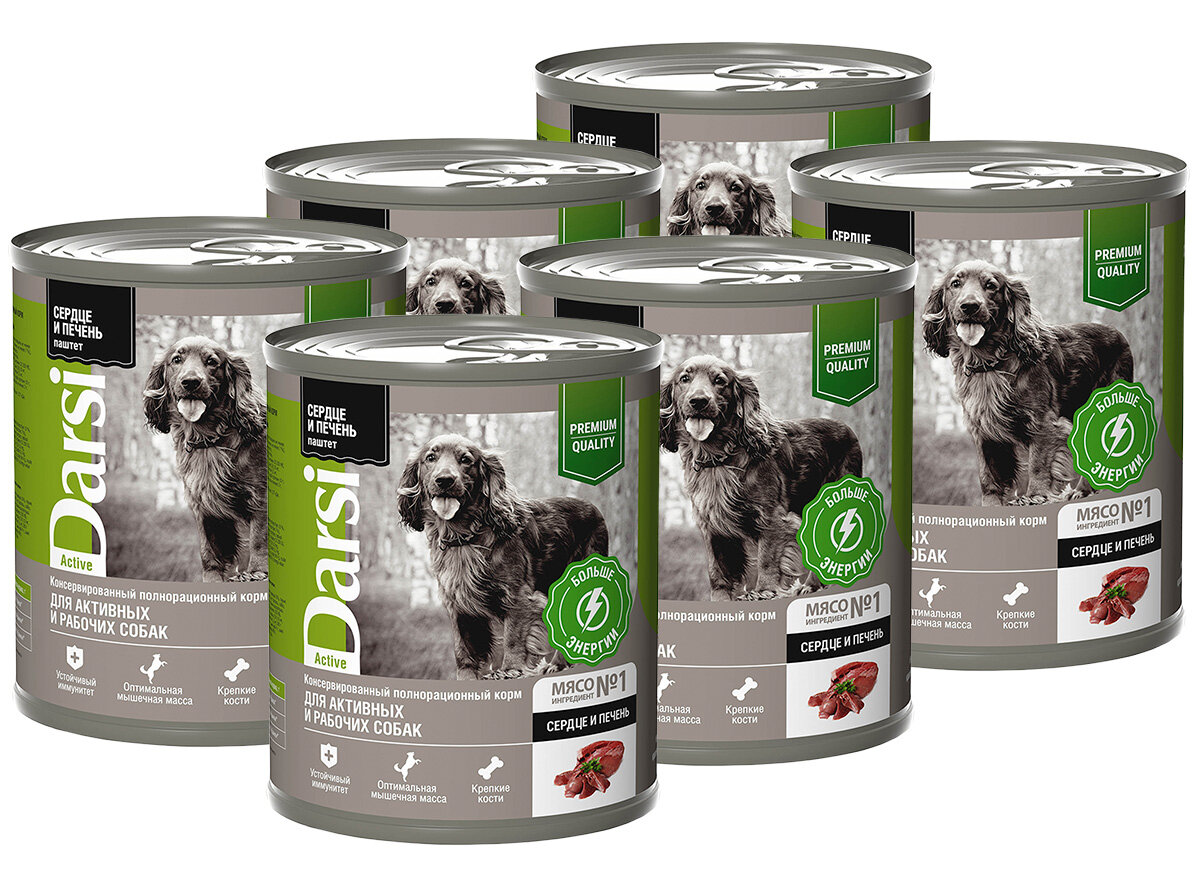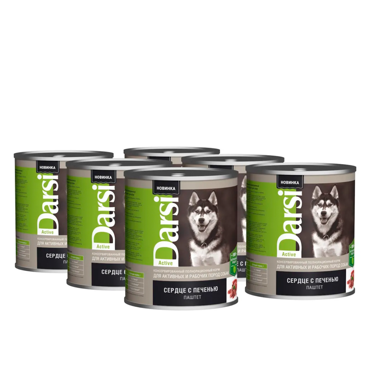 Darsi Консервы (паштет) д/активных и рабочих собак "Сердце с печенью", 850г х 6 шт.