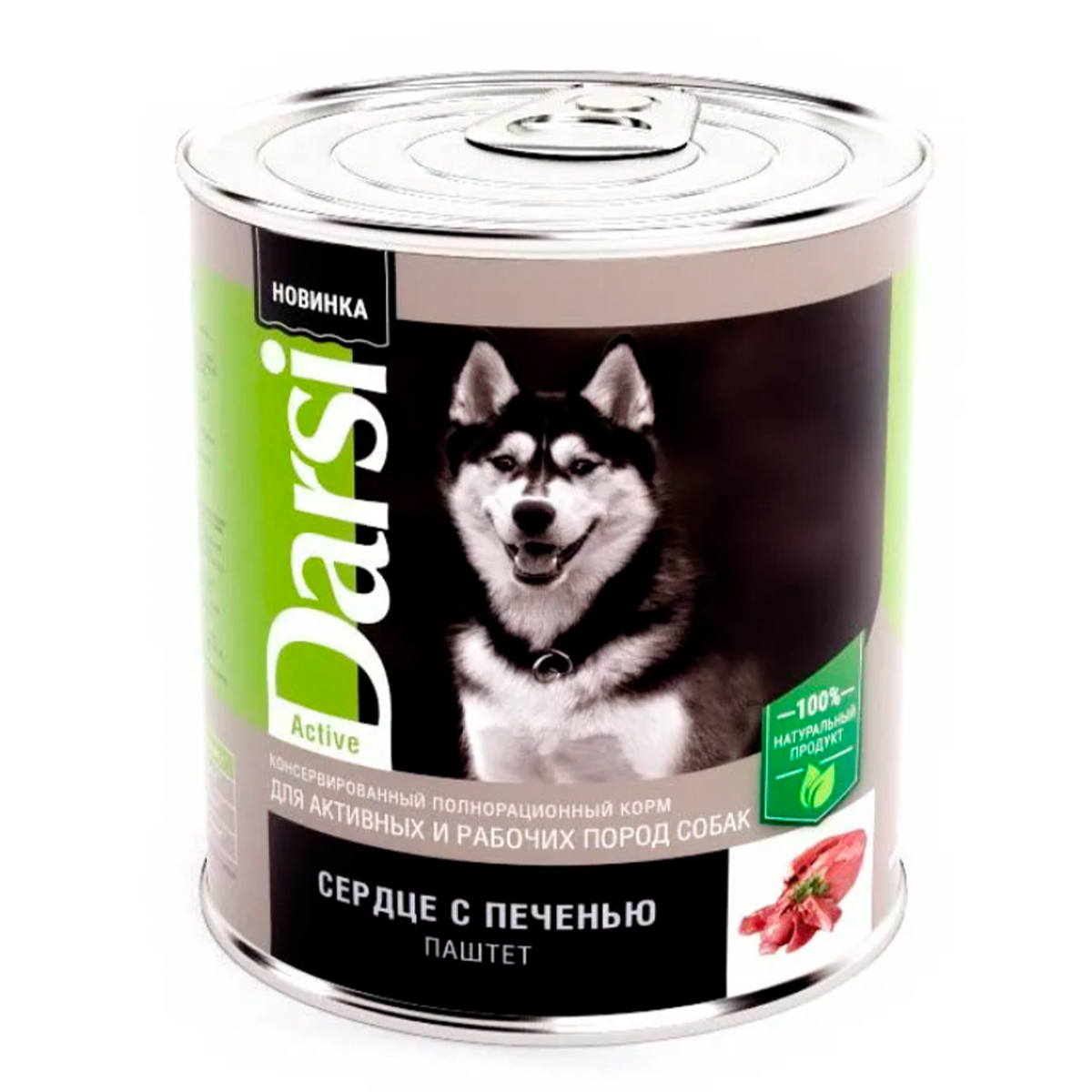 Darsi Консервы "Сердце с печенью" для активных и рабочих собак, паштет 0.85 кг