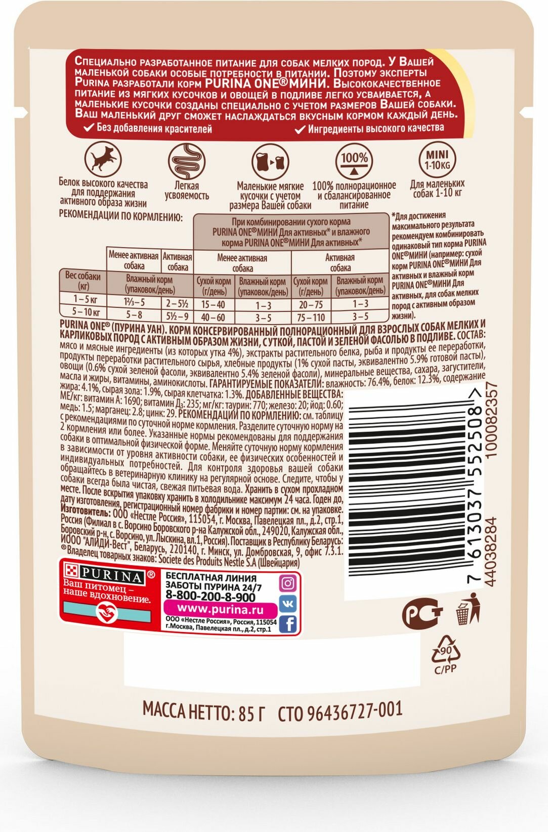 СохранитьPurina ONE Мини 85 г пауч влажный корм для активных собак с уткой, пастой и зеленой фасолью в подливе х26 штук интересное: