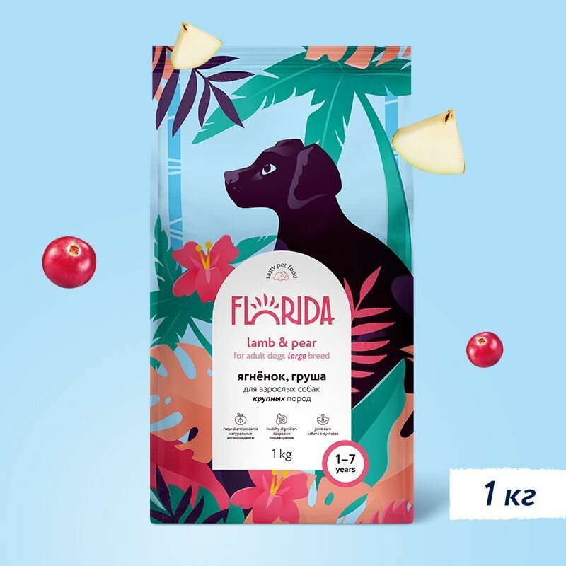 FLORIDA Сухой корм для взрослых собак крупных пород с ягненком и грушей, 1 кг