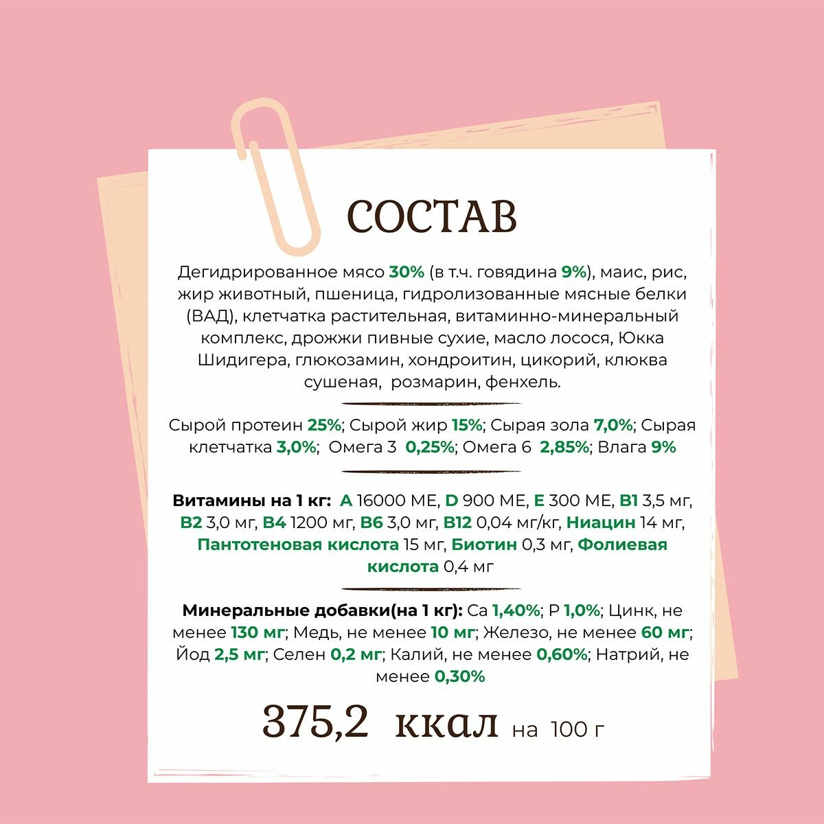| Класс ингредиентов | премиум / суперпремиум |