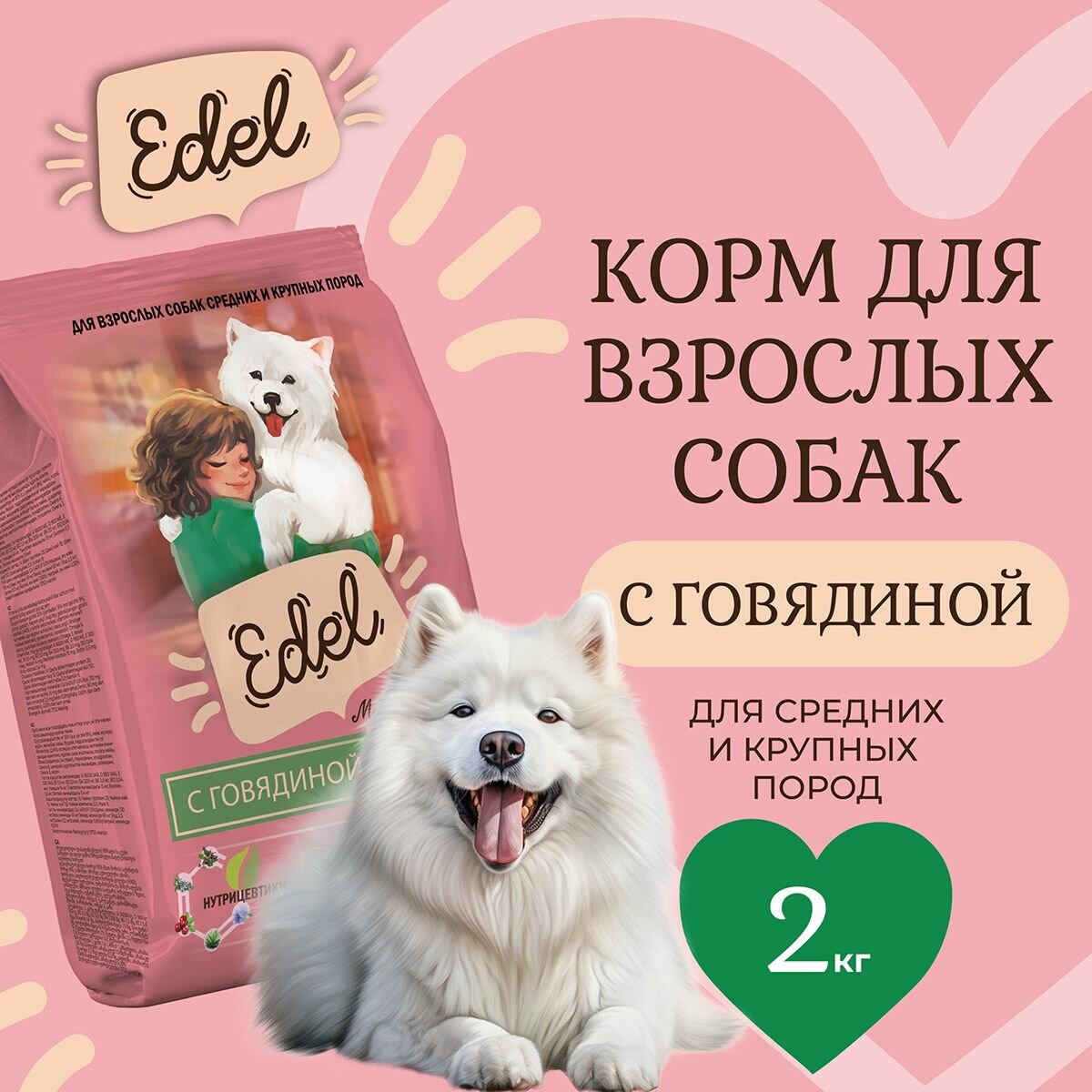 Корм сухой для собак средних и крупных пород Edel с говядиной, 12 кг Эдель