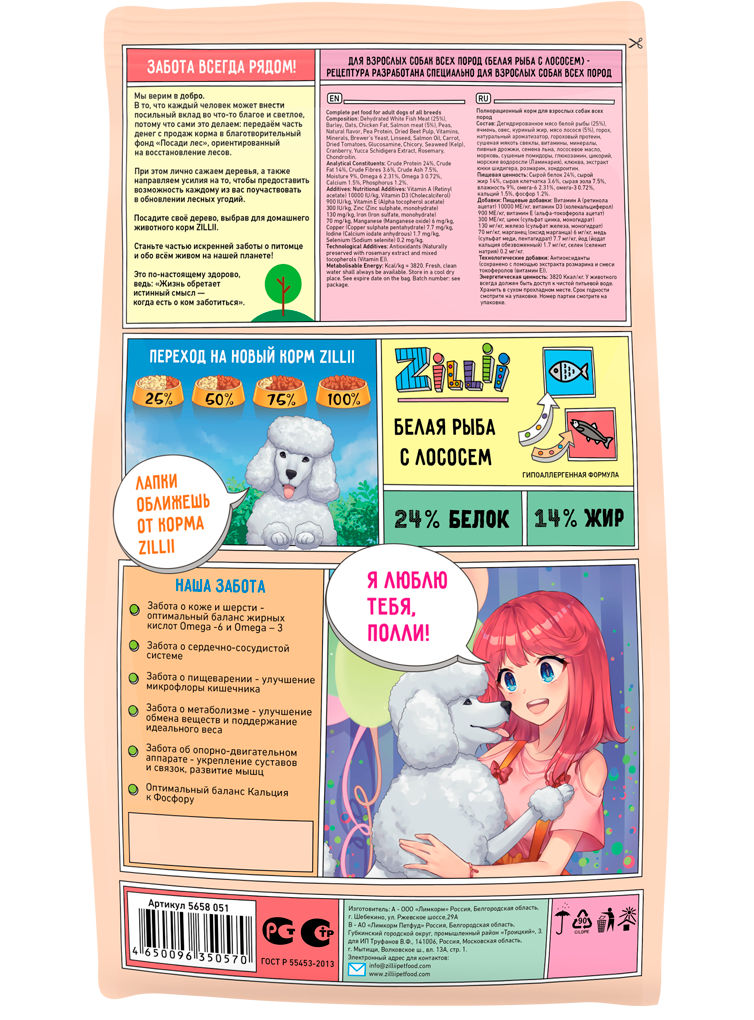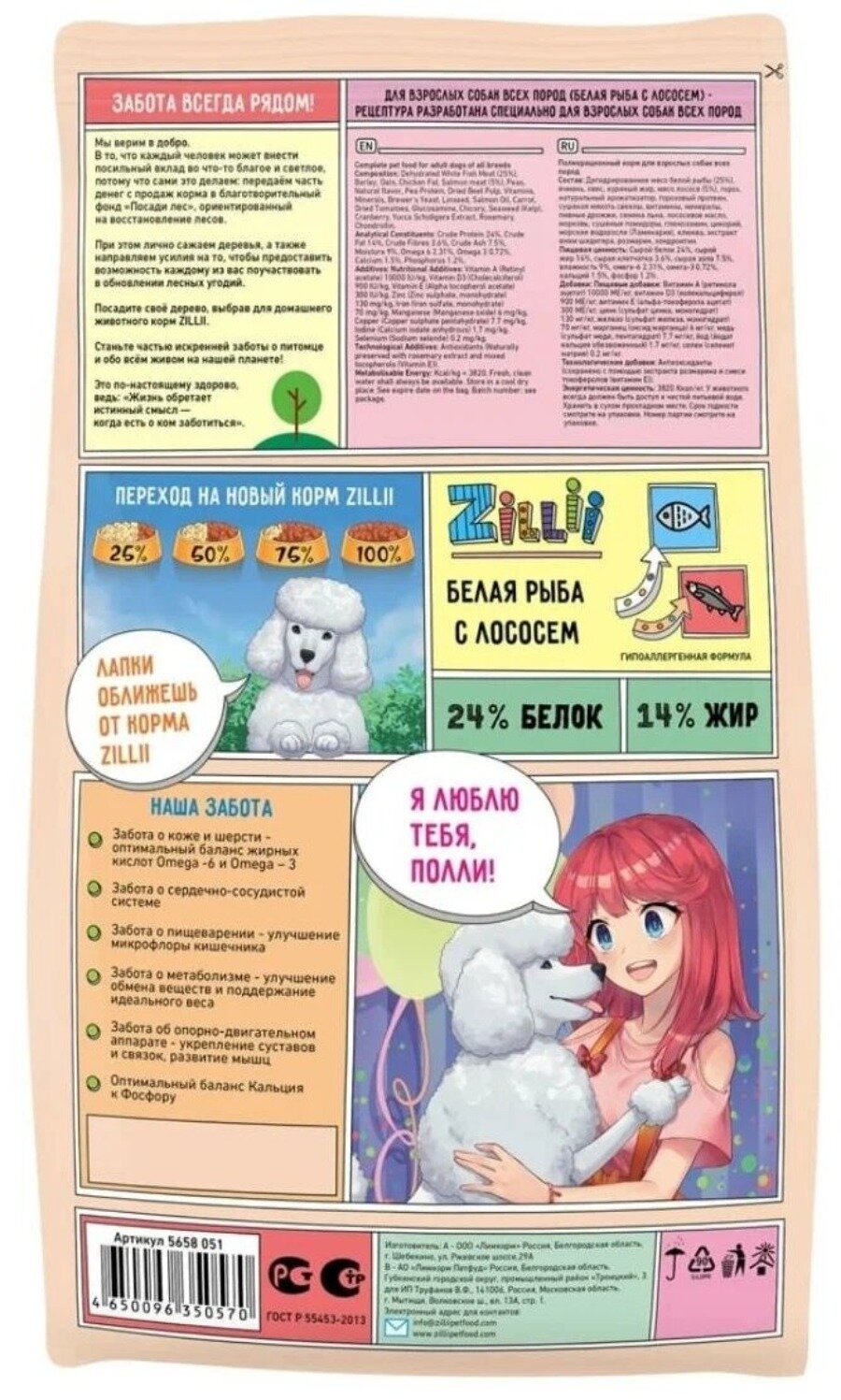 Корм сухой Zillii Adult Dog для взрослых собак Белая Рыба с Лососем, 3 кг