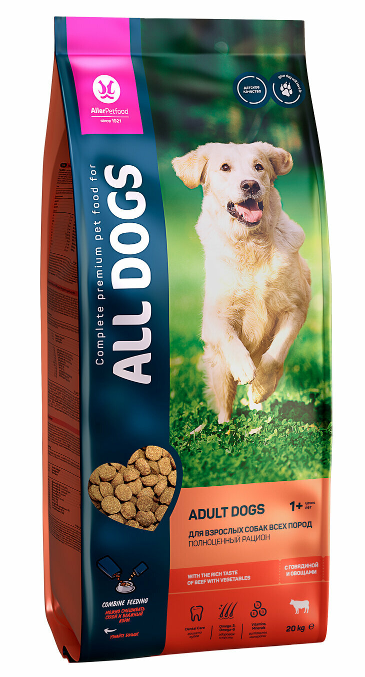 Сухой корм "ALL DOGS" для собак, говядина и овощи, 20 кг