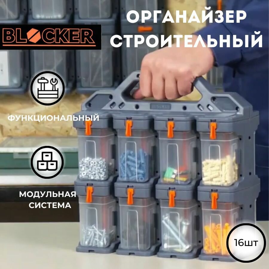 Органайзер для мелочей Blocker Expert модульный (серо-свинцовый/оранжевый, 16 шт), 395012026BR