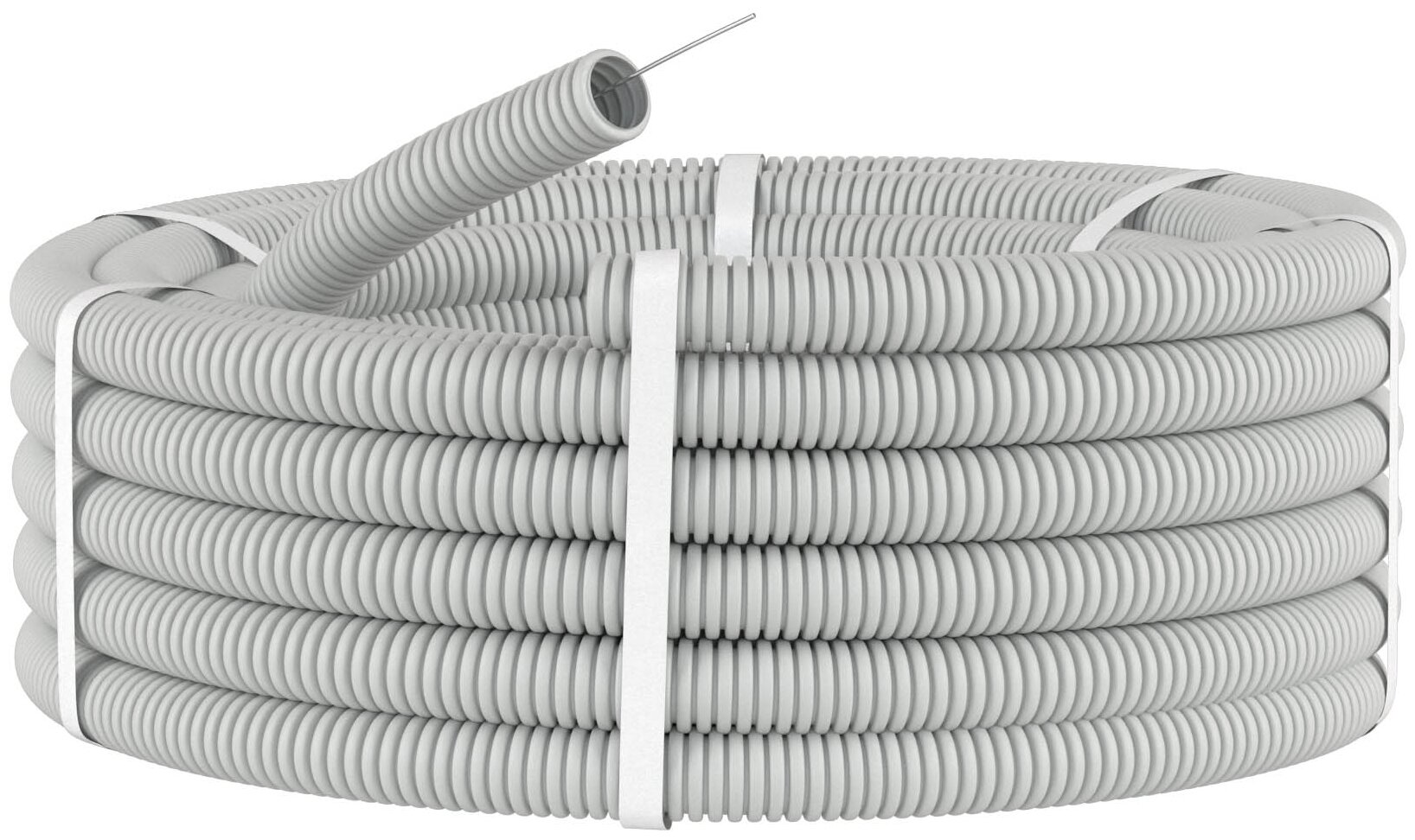 Гофра для кабеля ПВХ D 32 мм с протяжкой серая 25 м.DKC Premium. интересное: