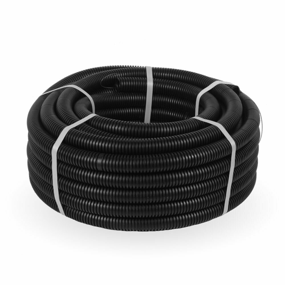 Труба гофрированная d25 ПНД черная с зондом cтроительная Промрукав 50 метров