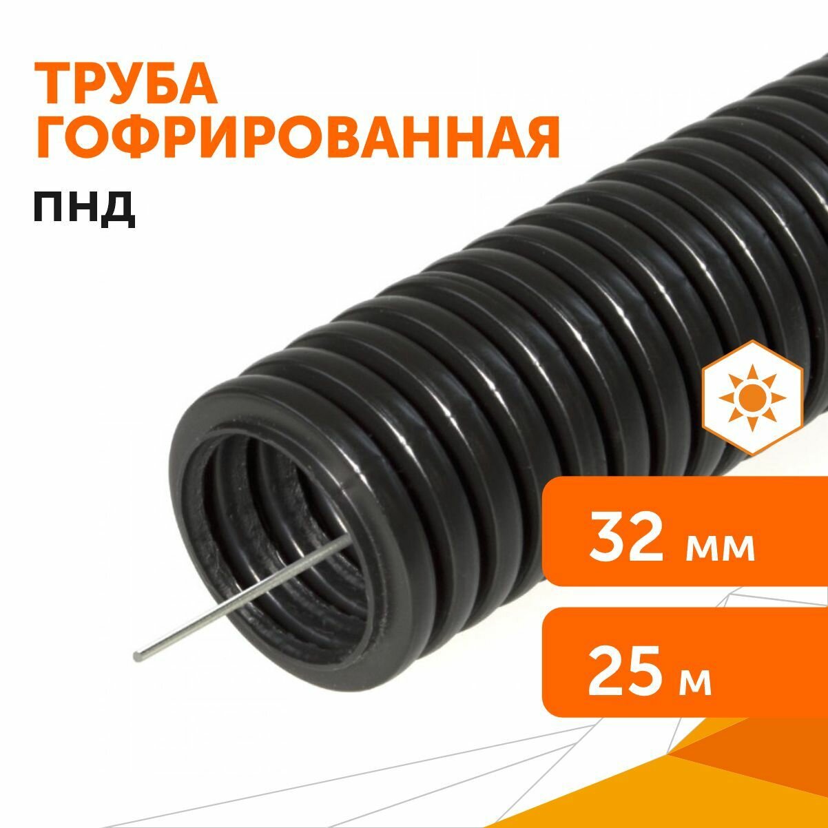 Труба гофрированная ПА негорючая (НГ) стойкая к ультрафиолету (УФ) черная с/з d32 мм, 25м