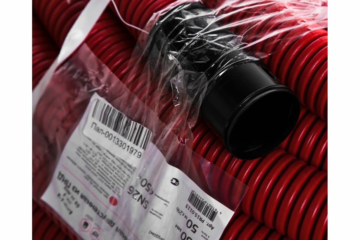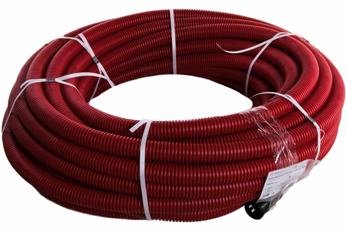 Купить Труба гофрированная двустенная ПНД гибкая d50мм с протяжкой SN26 450 красн. (уп.50м) Промрукав PR15.0113