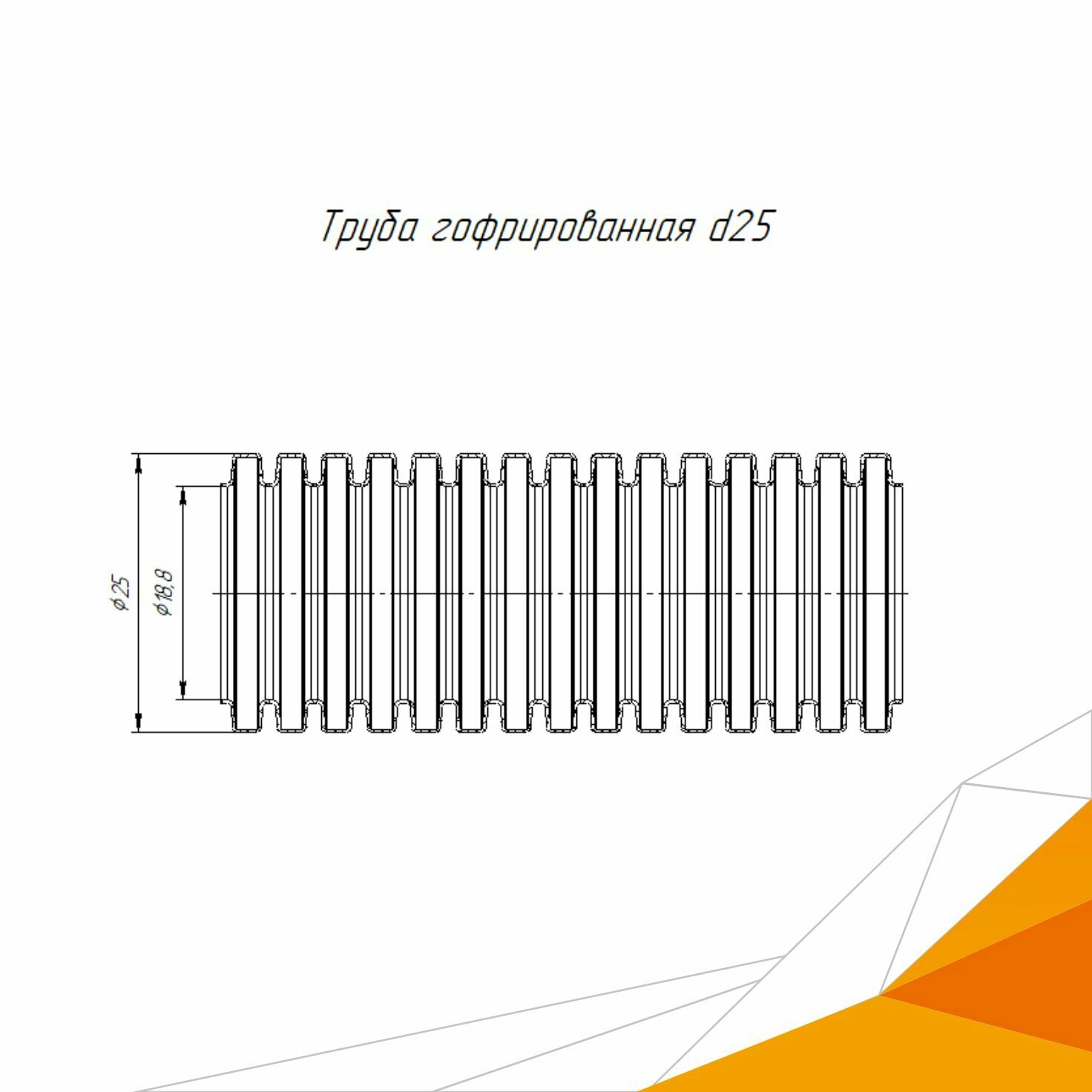 Труба гофрированная ПНД легкая 350 Н безгалогенная (HF), стойкая к ультрафиолету, с/з d25 мм, 25м