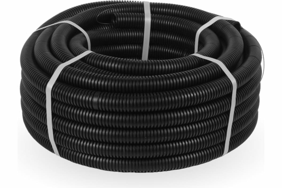 Труба гофрированная d25 ПНД черная с зондом cтроительная Промрукав 50 метров